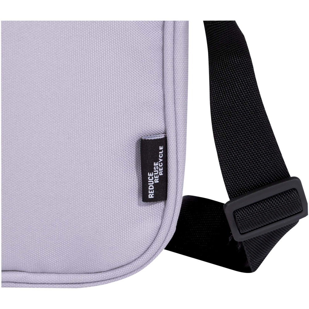 Practical and water-repellent crossbody bag made of GRS recycled polyester. It features a zipped compartment with a sleeve pocket inside to keep your everyday gadgets safely in place, a zipped front pocket for keys and valuable accessories, and an open sleeve pocket on the back for quick storage and access. With its adjustable high quality shoulder straps, the Byron crossbody bag is a perfect bag for everyday use with a minimal ecological footprint. PVC free. Dimensions: 17 x 23,5 x 5 cm