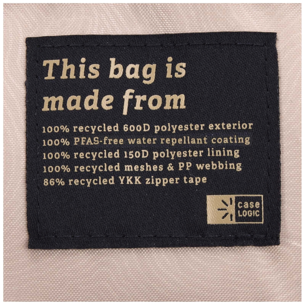 The Case Logic Invigo 15.6" laptop backpack is a simple and refined backpack made of recycled materials with two main compartments and thoughtful organisational features. It is made with a 100% recycled 600D polyester exterior and 150D polyester lining. The padded laptop compartment protects a 15.6 laptop and the tablet sleeve can hold a 12.9 tablet. Inside the backpack there are slip pockets to store small accessories, and a zipped mesh pocket providing additional secure storage for small items such as keys. At the exterior of the backpack there is a hidden back panel security pocket that keeps vital items like passport or wallet hidden yet close at hand. The front pocket provides quick storage of items while on-the-go, and the 2 side pockets are suitable for water bottles or an umbrella. The backpack also features a luggage pass-through strap to attach the bag to rolling luggage for effortless travel. Dimensions: 30,5 x 46 x 19 cm