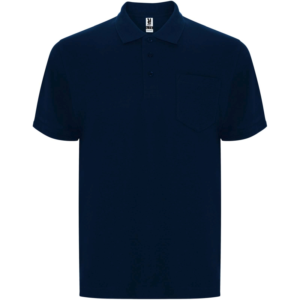 Short-sleeve polo shirt with pocket on left chest. Collar and cuffs in 1x1 ribbed fabric with detail. 3-button placket. Reinforced covered seams in collar. Removable label. Anti-pilling treatment.