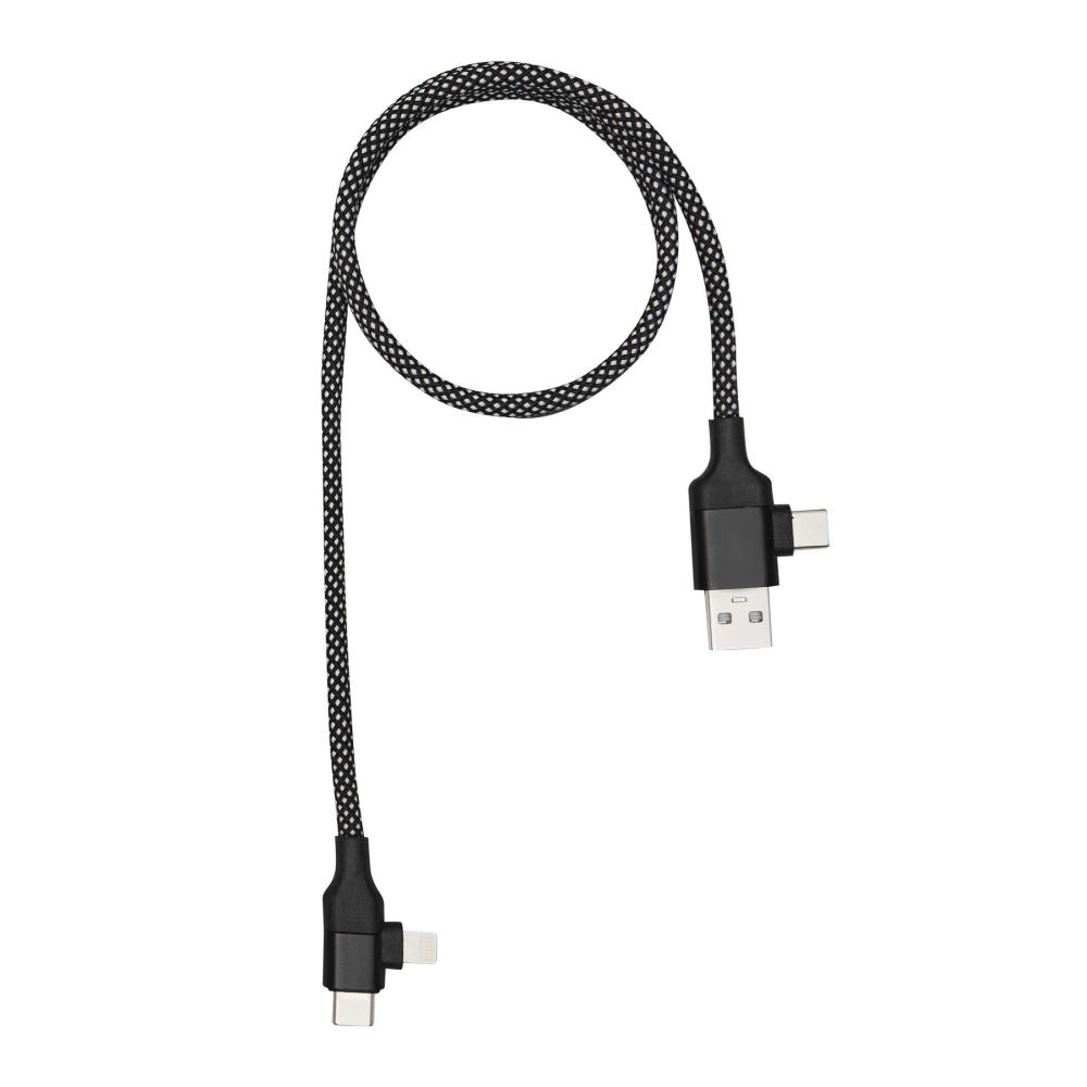 Charging and data transfer cable to charge smartphones, USB-powered devices, and laptops (60W power delivery) as well as for data transfer, cable length approx. 100 cm, includes 2 charging connectors (combo plug USB Type-C / Lightning, combo plug USB Type-A / USB Type-C), magnetic cable that can be easily and neatly rolled up, packed in a gift box. Dimensions: 104 cm