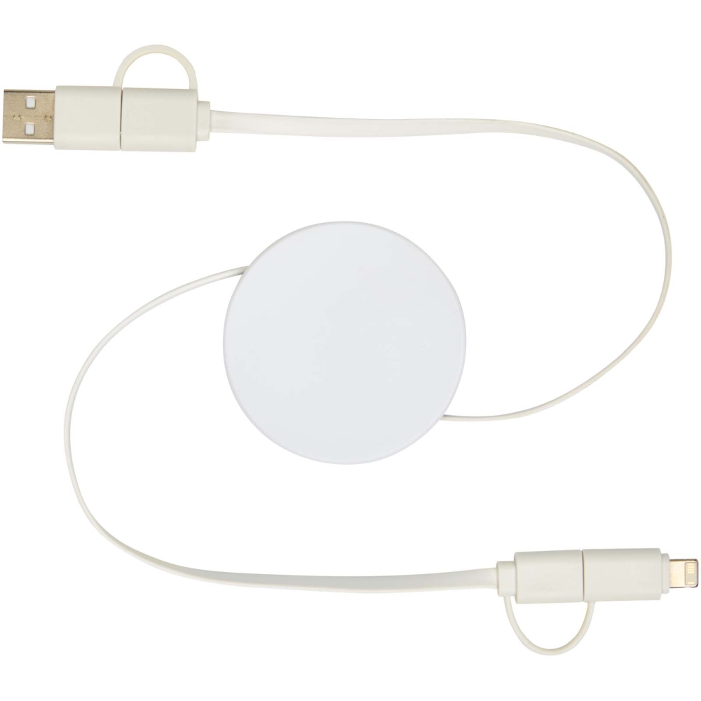 Citala 5-in-1 recycled plastic 90 cm retractable data sync and 40W fast charge cable, white