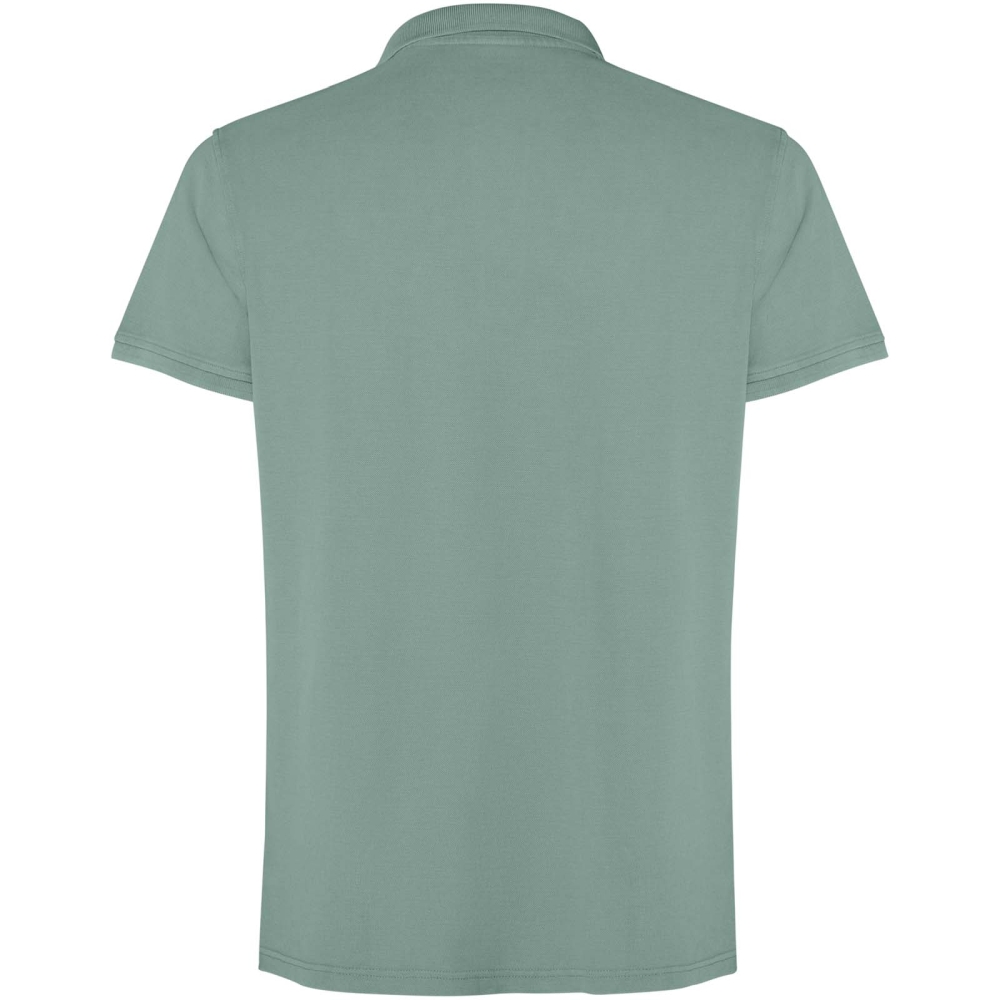 Short sleeve unisex polo. Acid-wash finish. Ribbed 1x1 collar and cuffs, with side openings. Tone-on-tone cover stitch. Placket with three buttons.