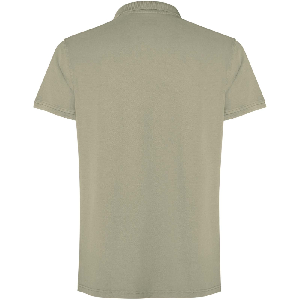 Short sleeve unisex polo. Acid-wash finish. Ribbed 1x1 collar and cuffs, with side openings. Tone-on-tone cover stitch. Placket with three buttons.