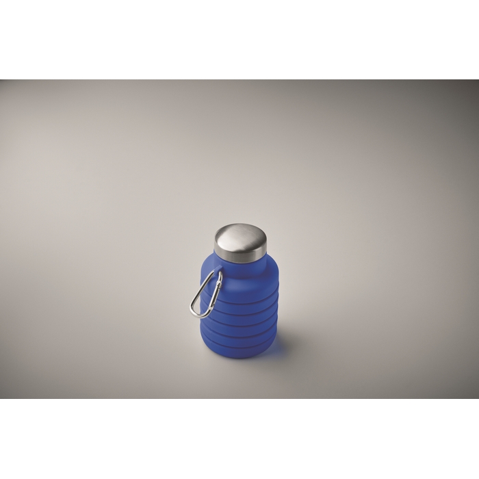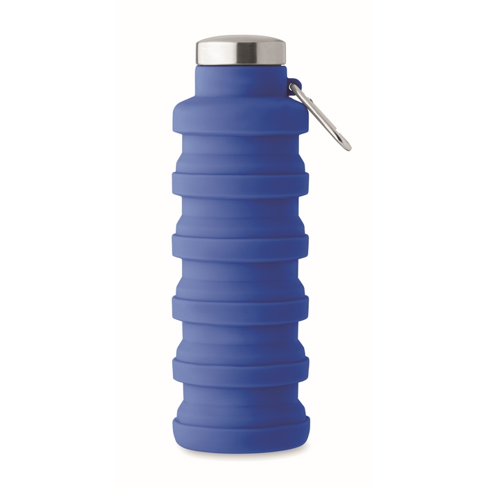 Collapsible silicone bottle with stainless steel lid and aluminium carabiner. The carabiner is not for climbing (non-professional use). Capacity: 500 ml. Dimensions: O6.5 x 21 cm