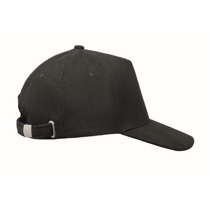 5 panel baseball cap in polyester corduroy with adjustable metal buckle closure. 220 gr/m2. Dimensions: 58 cm