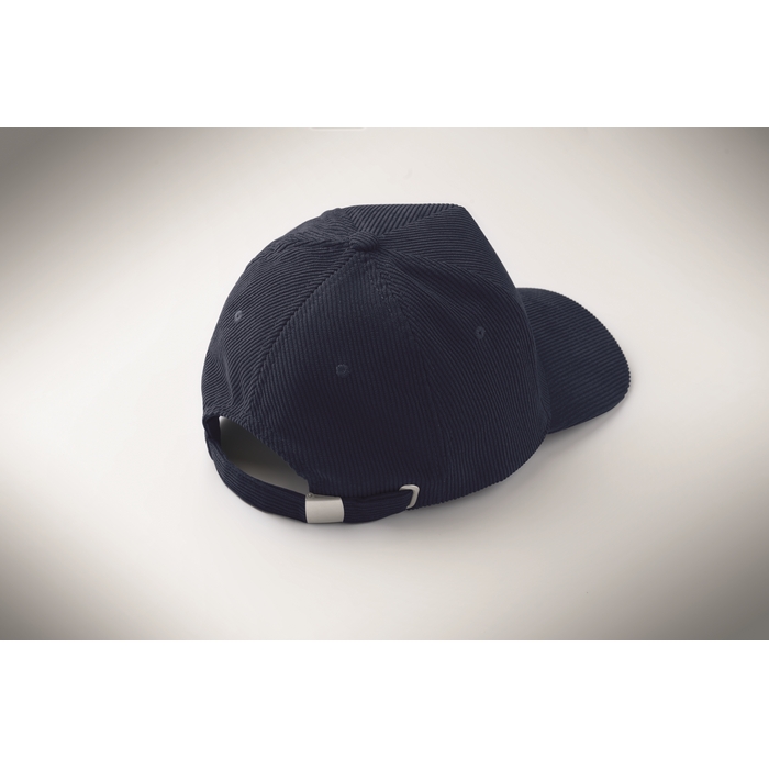 5 panel baseball cap in polyester corduroy with adjustable metal buckle closure. 220 gr/m2. Dimensions: 58 cm