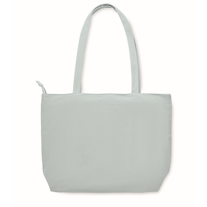 Large shopping/beach bag in polyester corduroy with top zipper closure, open front pocket and inner pocket. 220 gr/m2. Dimensions: 39 x 12 x 37 cm
