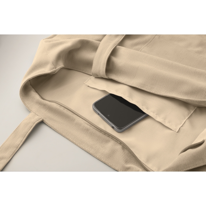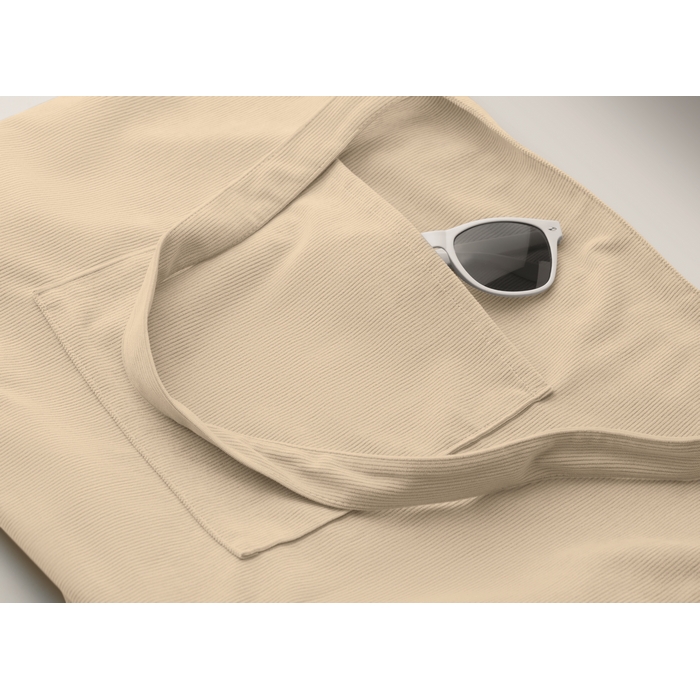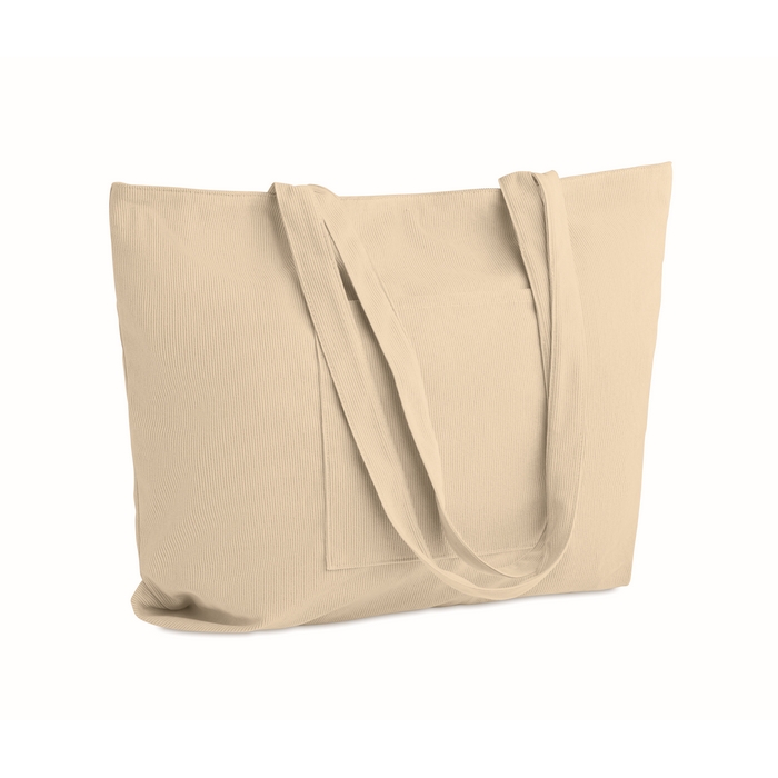 Large shopping/beach bag in polyester corduroy with top zipper closure, open front pocket and inner pocket. 220 gr/m2. Dimensions: 39 x 12 x 37 cm