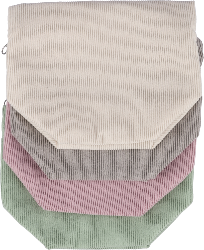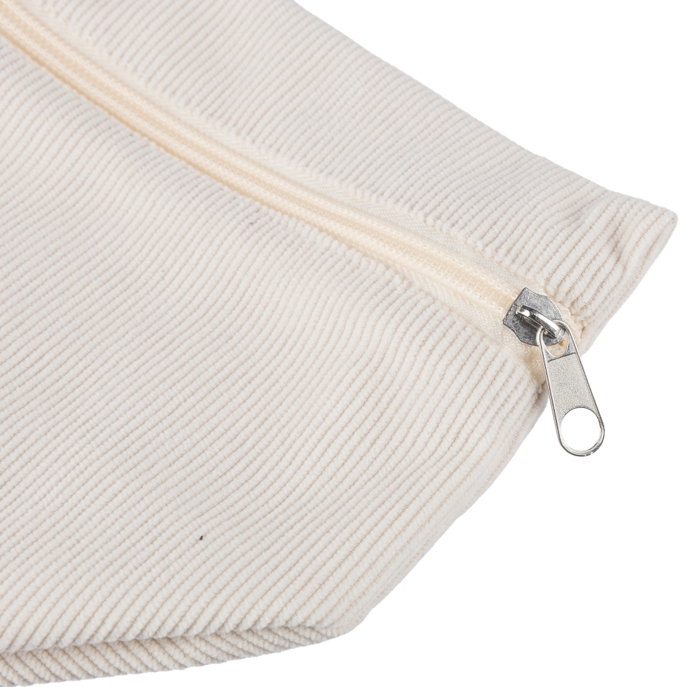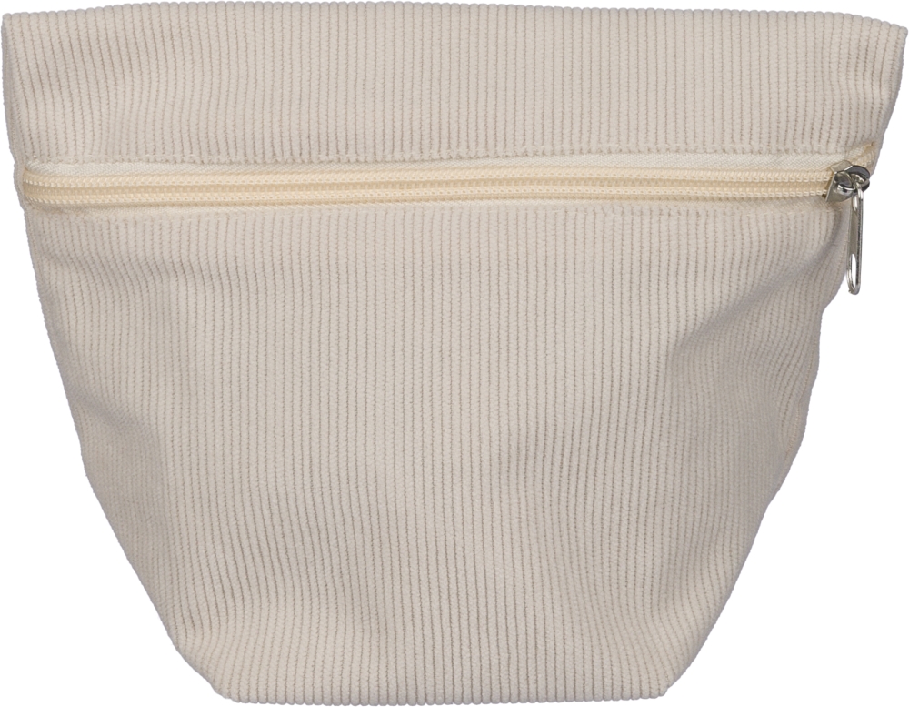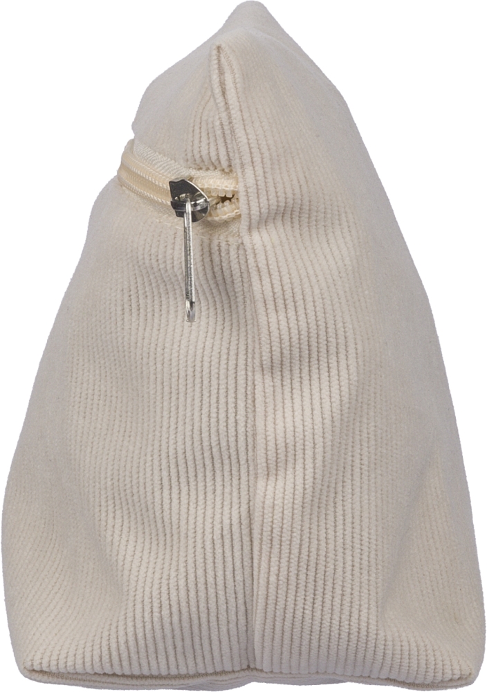 Corduroy zippered cosmetic pouch with one main compartment and secure zipper closing. Dimensions: 10 cm x 19 cm