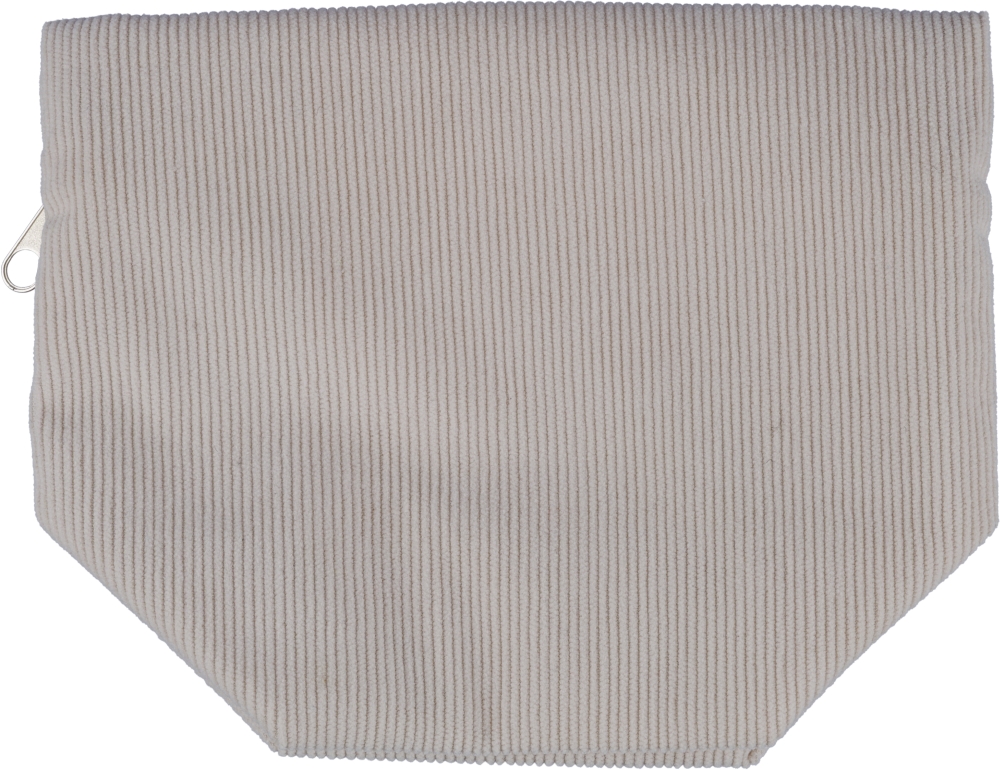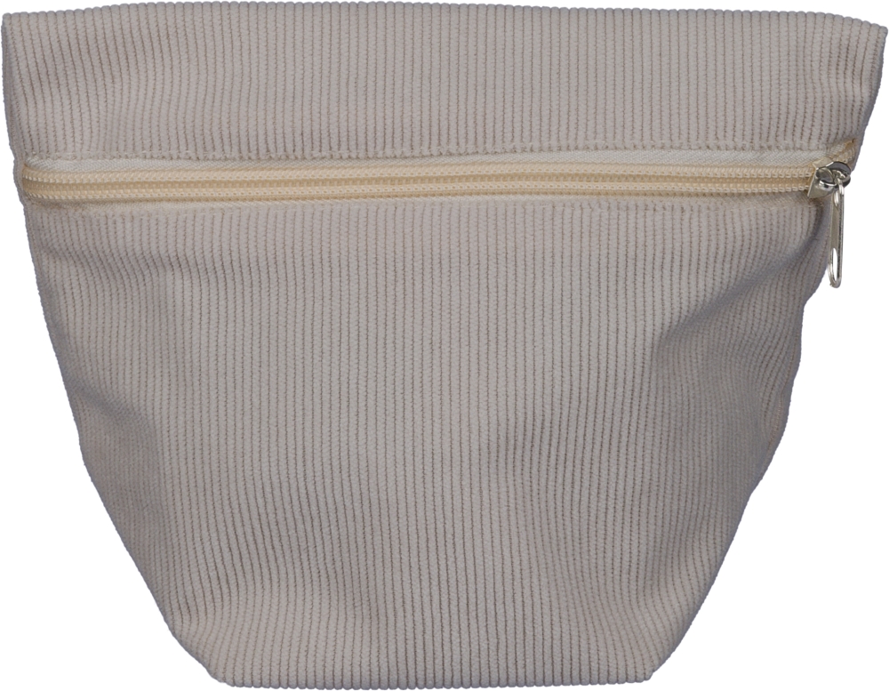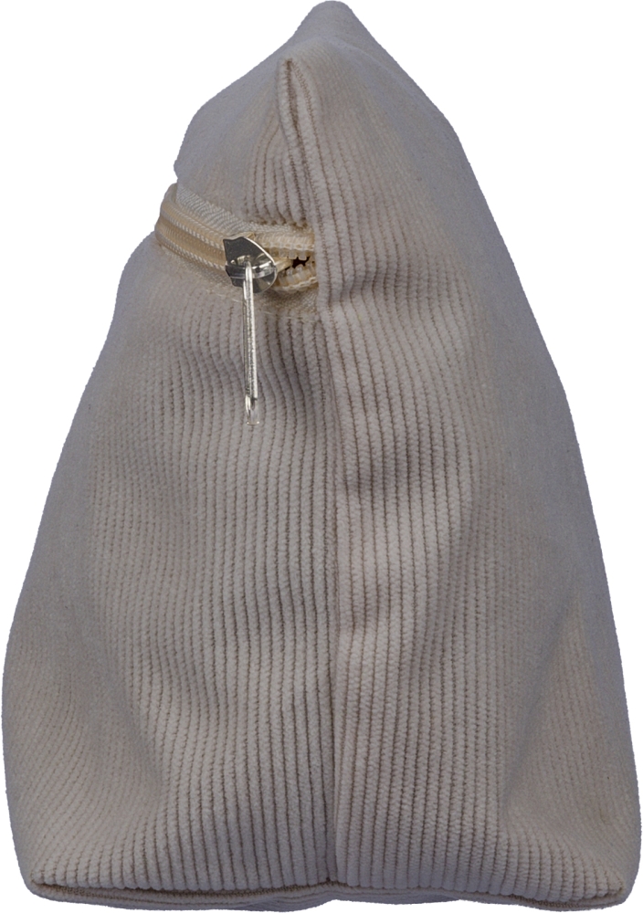 Corduroy zippered cosmetic pouch with one main compartment and secure zipper closing. Dimensions: 10 cm x 19 cm