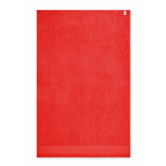 Bath towel made of 100% cotton, 380 gr/m2 fabric with cotton hanger loop. Soft and absorbent design. Size 100 cm x 150 cm. Dimensions: 100 x 150 cm