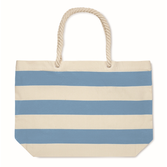 Striped beach or shopping bag in cotton with cord handle. 220 gr/m2. Dimensions: 55 x 15 x 39 cm