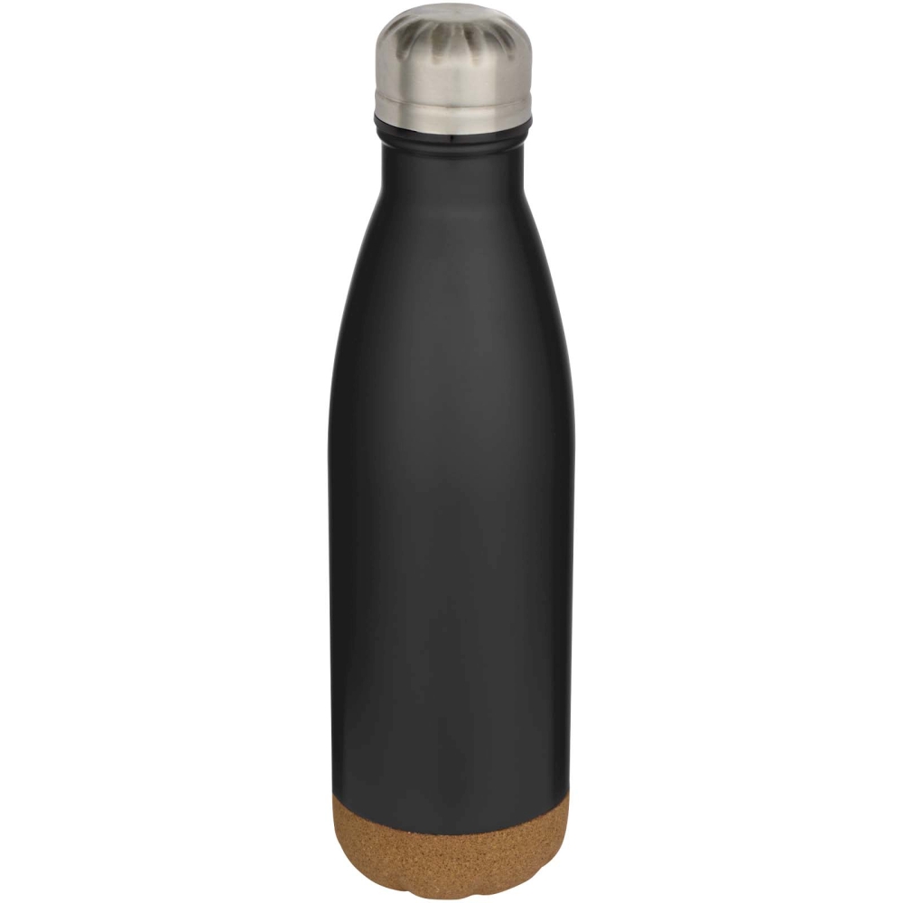 Cove 500 ml double wall vacuum insulated stainless steel water bottle with cork details, solid black