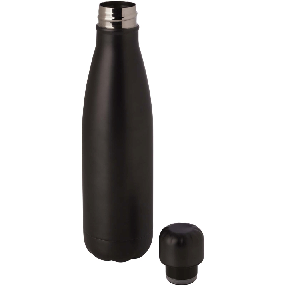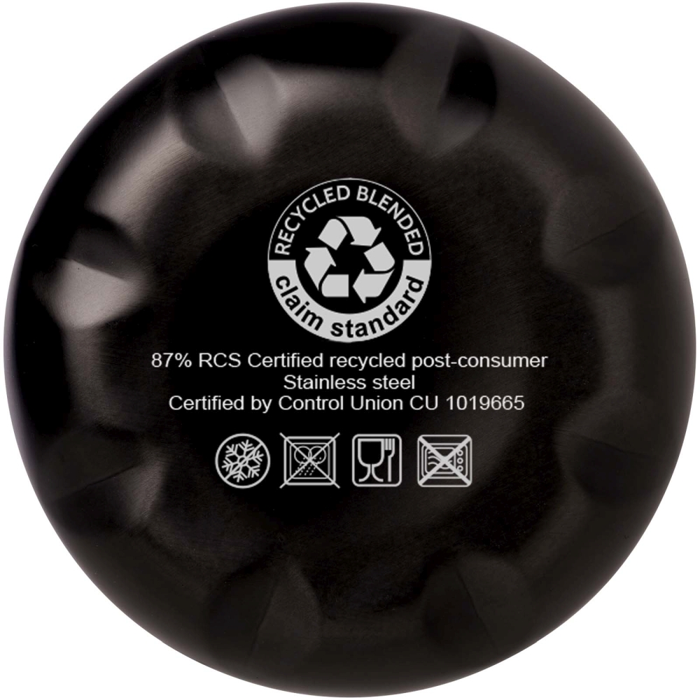Vacuum insulated RCS certified recycled stainless steel bottle with an iconic design. Featuring a base that fits in most cup holders, this sleek looking water bottle is a perfect promotional item. Tested and approved under German Food Safe Legislation (LFGB), and tested for phthalates content according to REACH regulations. Volume capacity is 500 ml. Presented in a recycled cardboard gift box. Keeps drinks hot for 12 hours and cold for 24 hours. Dimensions: 7,1 x 27 x 7,1 x O 7,1 cm