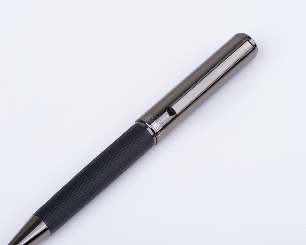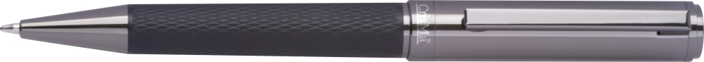 CrisMa metal ballpoint pen with patterned grip, blue ink, 1200 m writing length, small CrisMa logo under the clip, packed in a box with magnetic closure. Dimensions: 17 x 7,2 x 1,9 cm