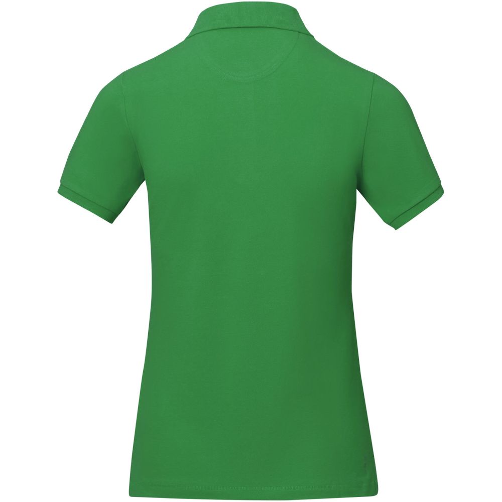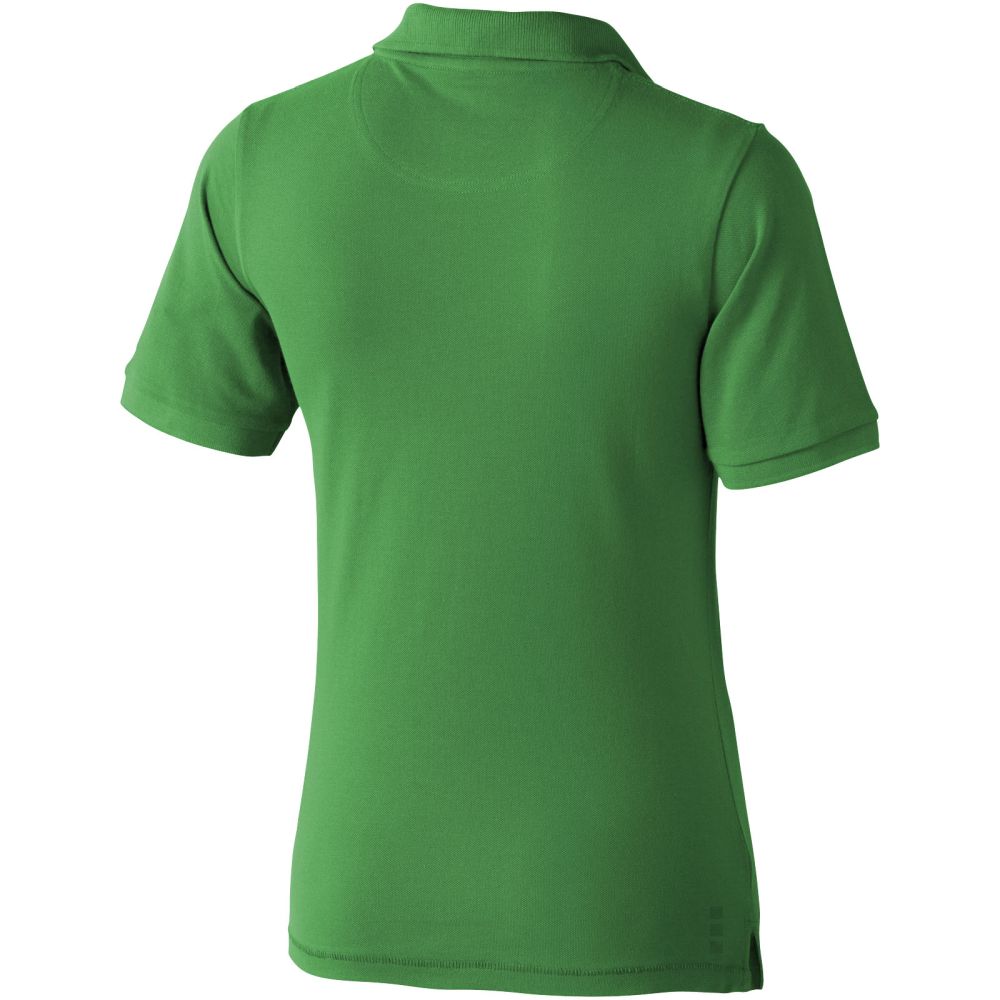 Calgary ladies polo. Pre-shrunk. 1x1 rib collar and cuffs. Tonal logo print at back. Forwarded shoulder seam with chain stitching. Satin neck tape. Side slit with satin tape on inside. Mens and Kids 2 button placket with engraved buttons. Ladies 3 button placket with engraved buttons. Corporate yet casual polo. Pick-Stitch details. Pique knit, 100% Cotton. 200 gsm