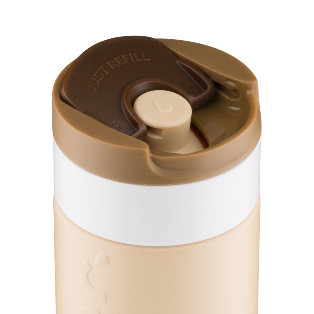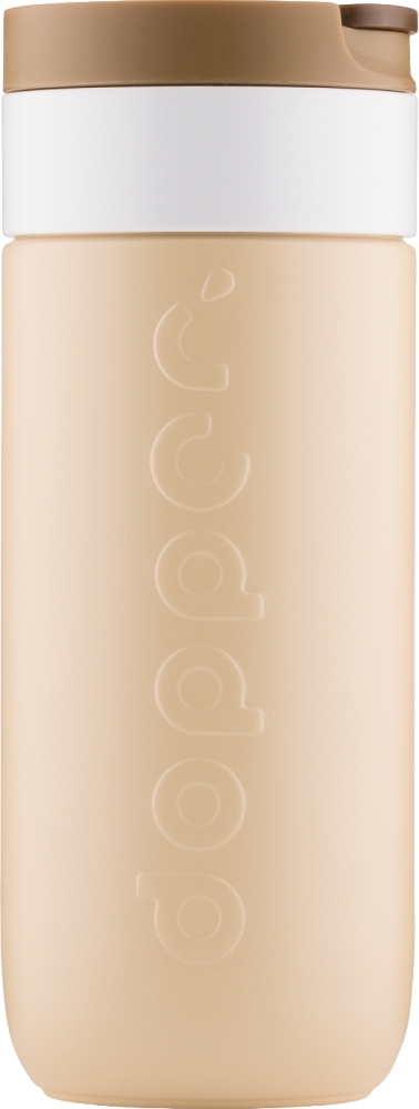 Morning caffeination, midday hydration, or an evening sparkling sensation. This Dopper Travel Mug is up for anything and ready to go anywhere. It keeps hot drinks steamy, cold drinks cool, and sparkling drinks fizzy. No leaks. No fuss. No extra weight. And definitely no single-use waste. Features an easy-to-open flip cap, keeps drinks hot for up to 6 hours and cold for up to 20 hours. Made from double-walled stainless steel with 90% recycled content, finished with a durable powder coating. Dishwasher safe (without print) up to 65 °C. Some staining or odor may occur with tea or coffee. Use caution with hot liquids. Dimensions: 7 x 18 cm