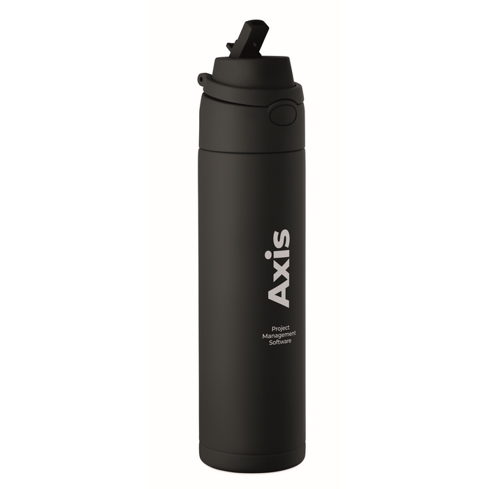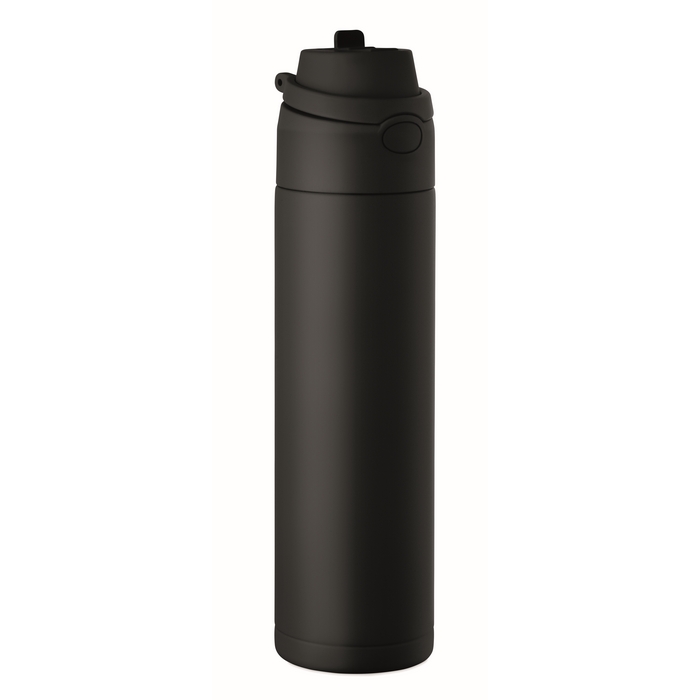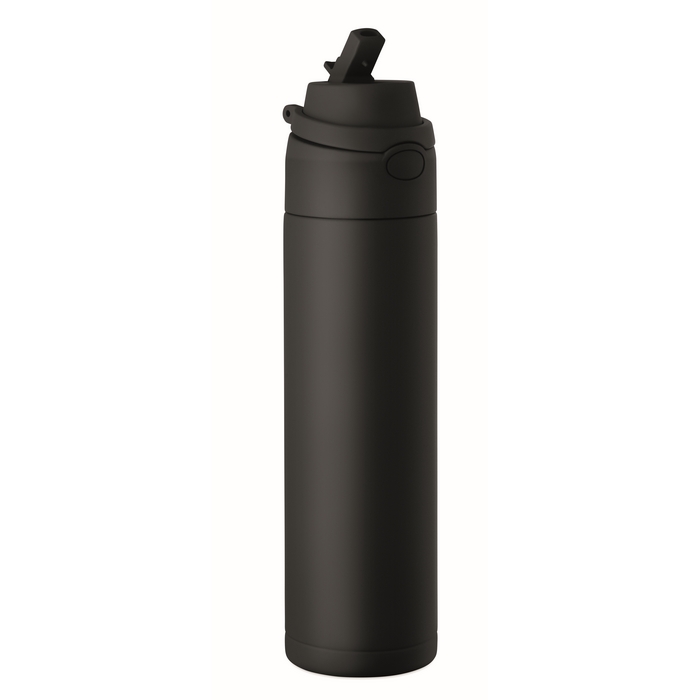 Double wall insulated recycled stainless steel (90% recycled stainless and 10% stainless steel) bottle. Features 2-in-1 straw and sip PP lid with handle. Leak-free. Capacity: 500 ml. Rozměry: O7.4 x 26.6 cm