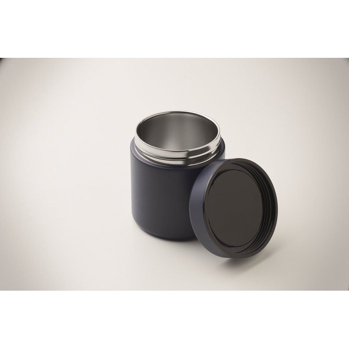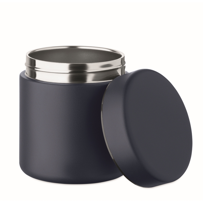 Double wall insulated lunch container made of 90 % recycled stainless steel and 10% stainless steel with PP lid. Capacity: 500 ml. Dimensions: O10 x 14 cm
