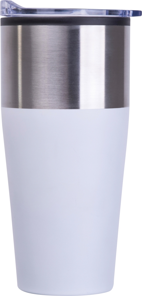 Double-walled 600 ml coffee thermo cup with a plastic inner core and stainless steel exterior. Keeps beverages hot or cold for longer and is also suitable for carbonated drinks. Dimensions: o 8,8 x 19,3 cm