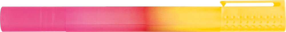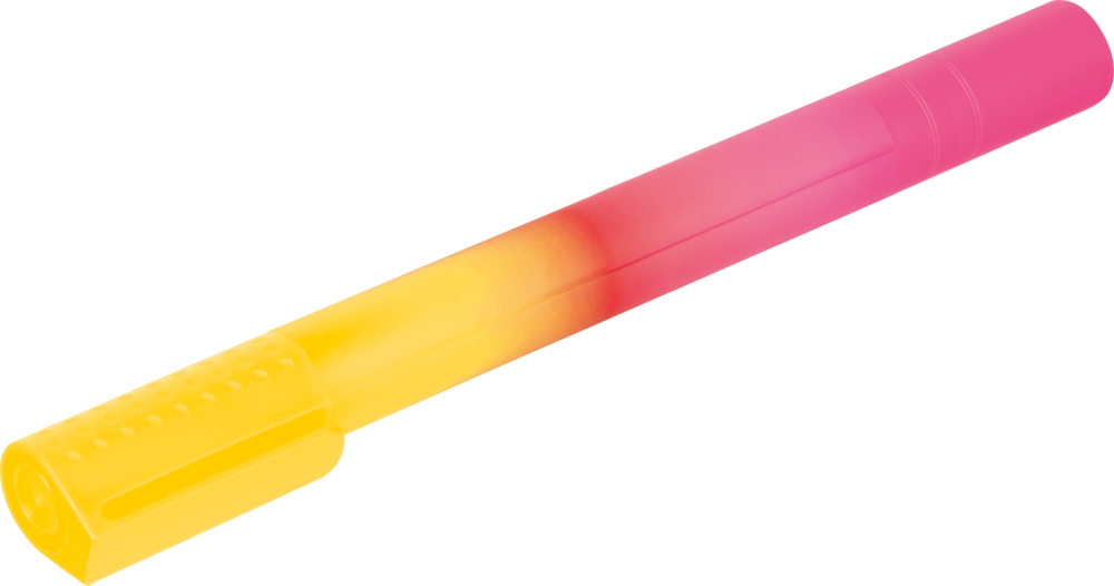 Dual-color XXL highlighter made of plastic (PP). Marker color matches the cap color. Dimensions: o 2,2 x 24,5 cm