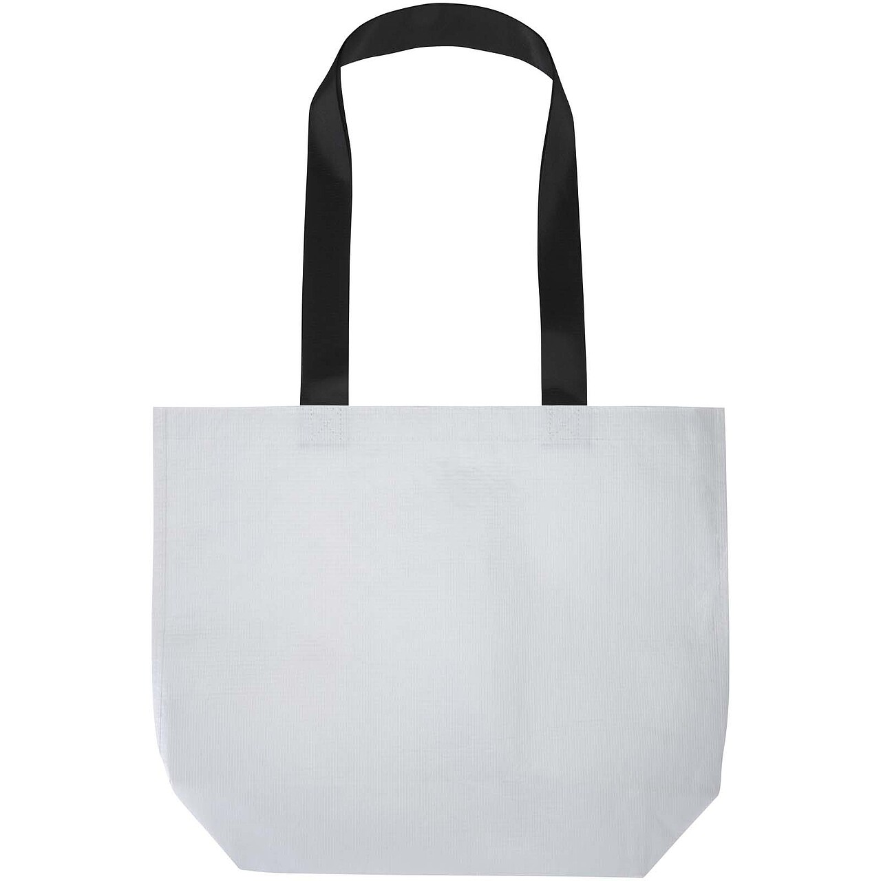The Duo double laminated bottom tote bag is made from 150 g/m2 GRS certified RPET with double lamination, and offers enhanced durability and water resistance when it counts. It features a spacious open main compartment, sturdy reinforced handles, and a wide bottom for added capacity. Designed to carry up to 10 kg, its a stylish and reliable option for daily errands, trade shows, or promotional events. Volume capacity: 18 litres. Dimensions: 45 x 37,5 x 13,5 cm