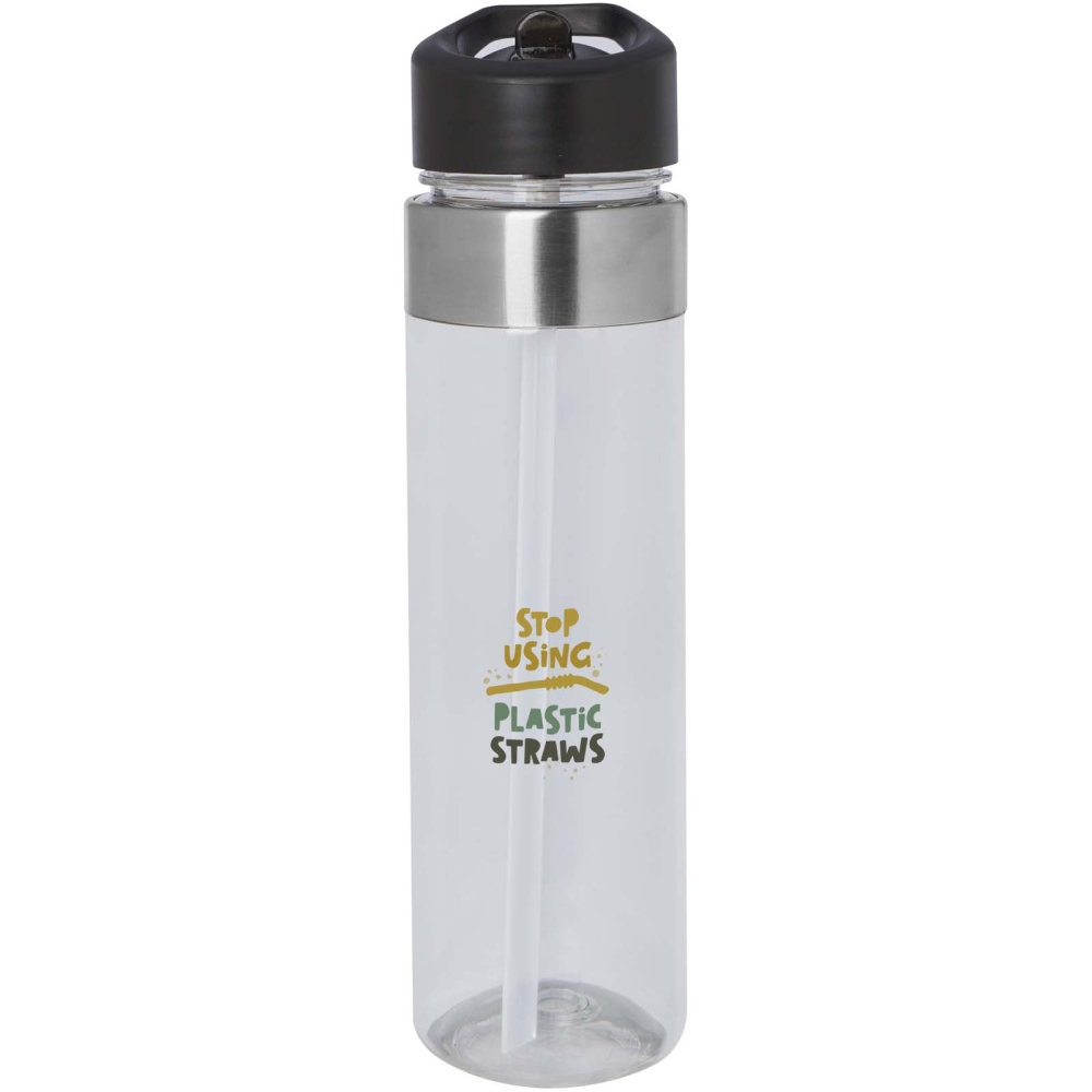 Water bottle with 650 ml capacity and a convenient flip spout for easy drinking. Made from durable Tritan material with stainless steel details on the top of the bottle. Dimensions: 24,5 x O 6,7 cm