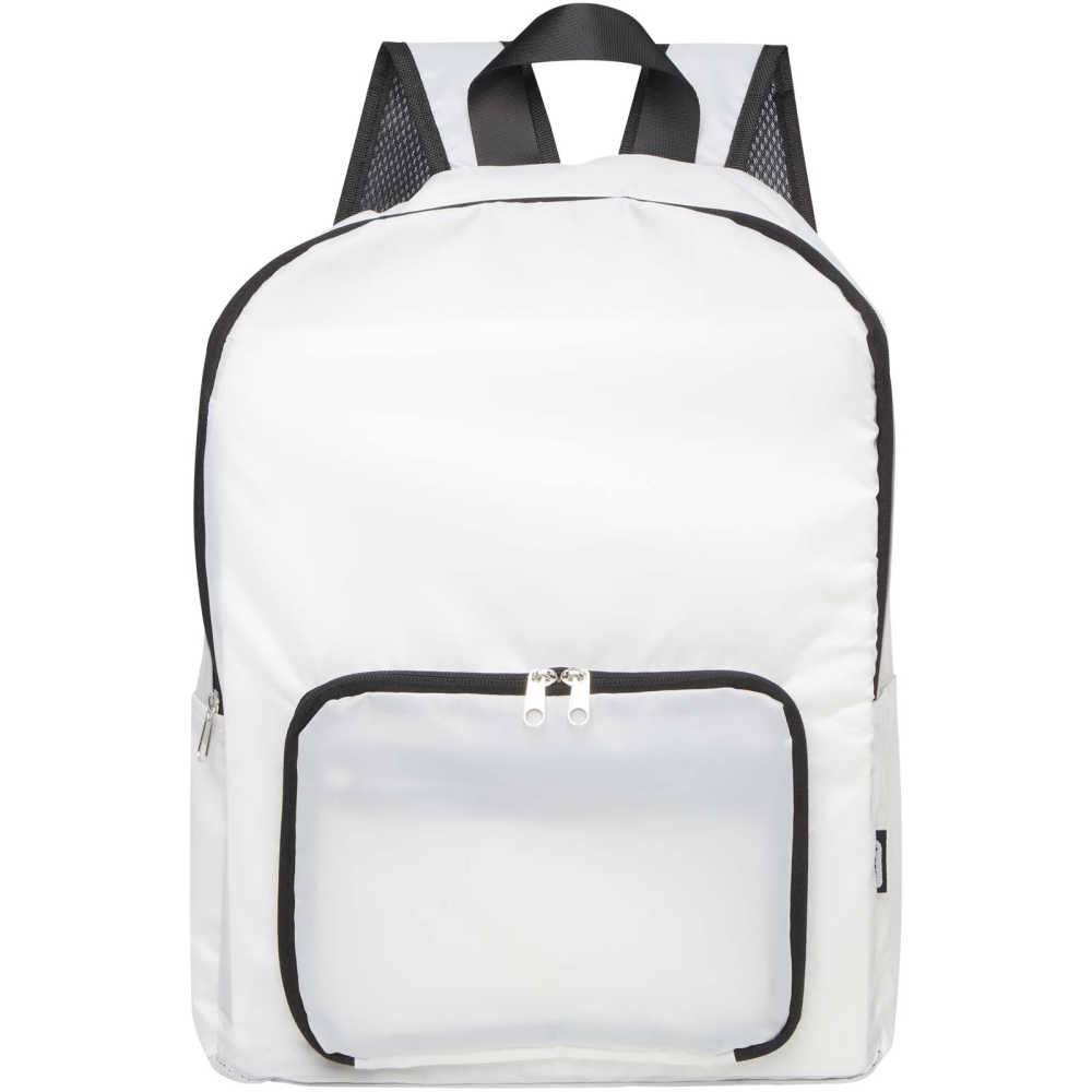 Designed for convenience and practicality, this lightweight yet durable backpack adapts to your needs by folding neatly into a compact pouch with a webbing loop to hang or carry easily, making it perfect for travellers, hikers, and everyday use. Featuring a zipped main compartment, a zipped front pocket, two side pockets, and adjustable shoulder straps. Made of PVC free recycled polyester. Volume capacity: 15 litres. Dimensions: 33 x 44 x 11 cm