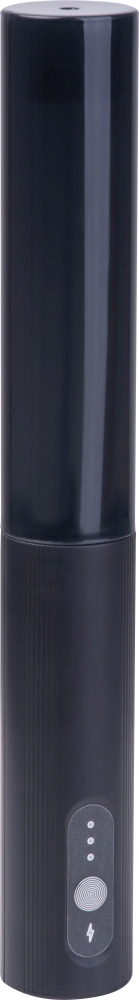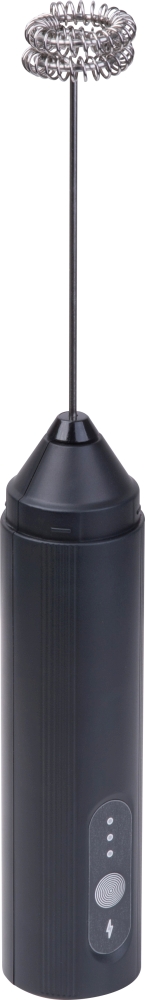 Electric milk frother (3 watts) with rechargeable battery (300 mAh) and protective sleeve, including charging cable. Made of ABS and stainless steel. Dimensions: o 3,1 x 23,2 cm