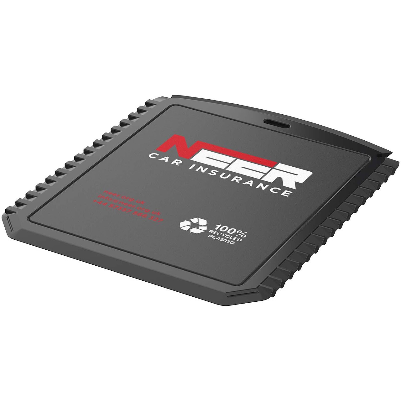 Compact and convenient, the Thrym rectangular recycled plastic ice scraper is the perfect tool for use in icy conditions. Made from 100% recycled plastic, its durable construction ensures effective removal of ice and frost. Features a flat edge, a serrated edge, and a windscreen wiper blade cleaner. Recycled HIPS Plastic. Dimensions: 12 x 10 cm
