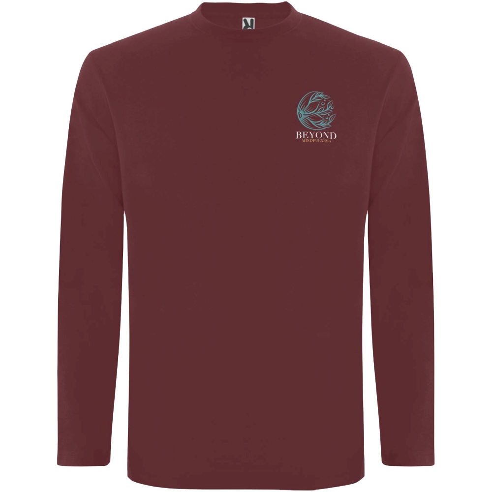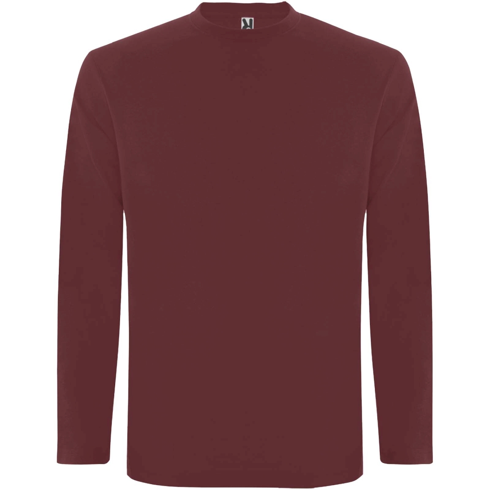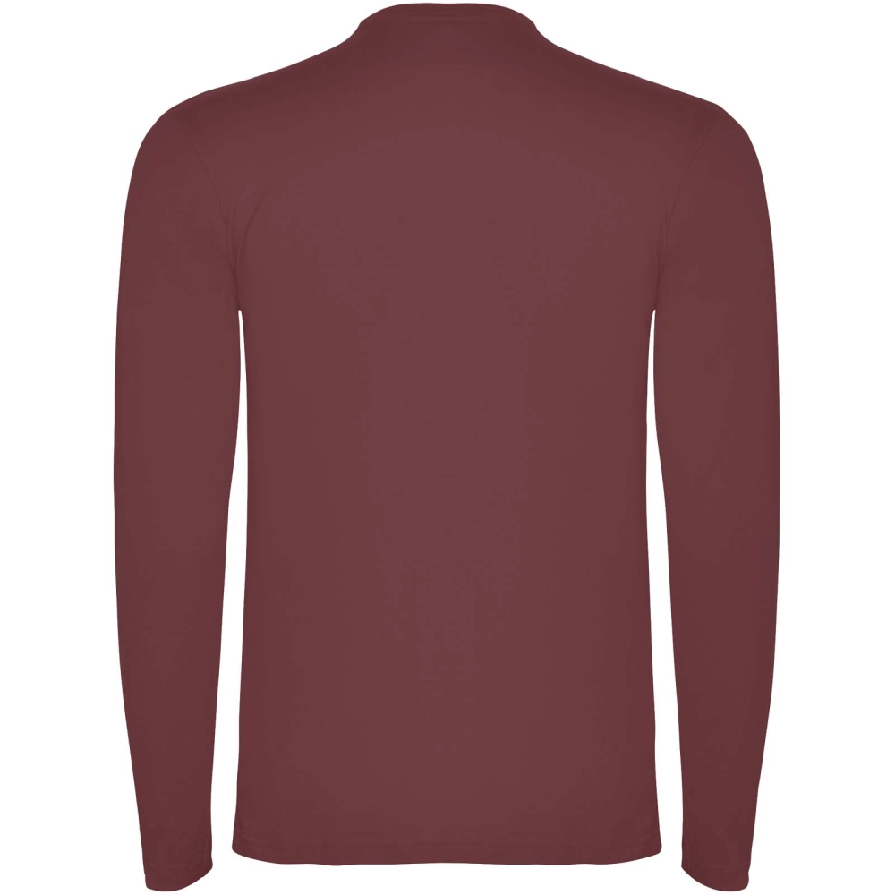 Long-sleeve t-shirt in tubular fabric and 4-layer crew neck. Reinforced covered seams in collar and shoulders. No cuffs. Removable label. Tubular design in adult sizes and side seams in kids sizes. The model is 185 cm and is wearing size L.
