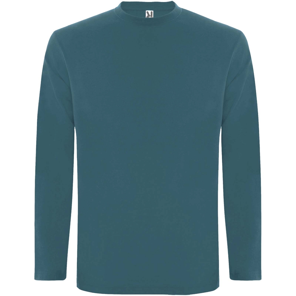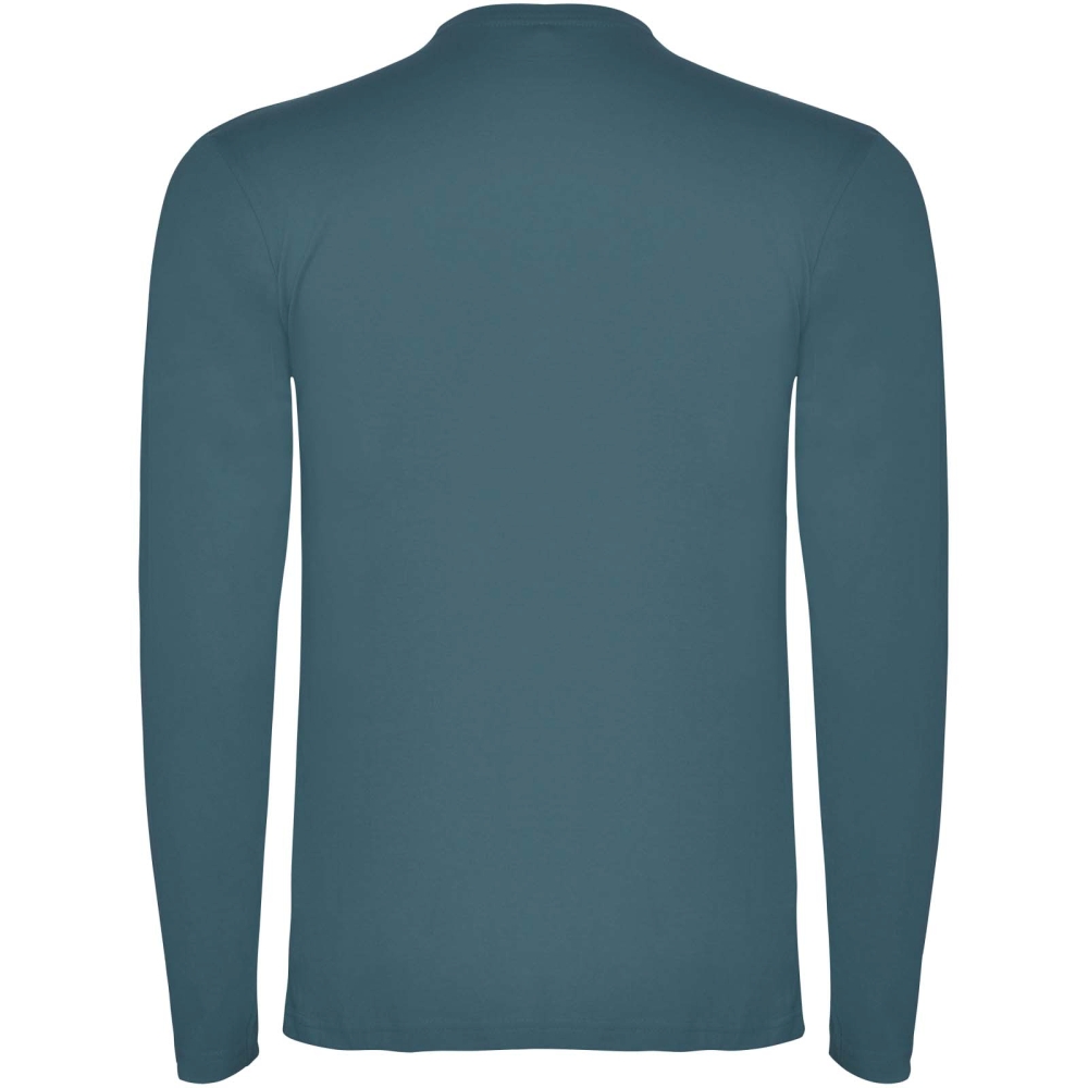 Long-sleeve t-shirt in tubular fabric and 4-layer crew neck. Reinforced covered seams in collar and shoulders. No cuffs. Removable label. Tubular design in adult sizes and side seams in kids sizes. The model is 185 cm and is wearing size L.