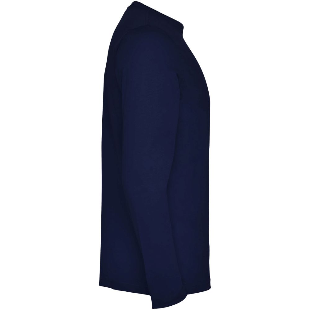 Long-sleeve t-shirt in tubular fabric and 4-layer crew neck. Reinforced covered seams in collar and shoulders. No cuffs. Removable label. Tubular design in adult sizes and side seams in kids sizes. The model is 185 cm and is wearing size L.