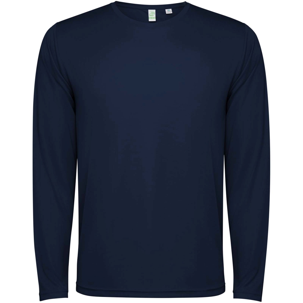 Long-sleeve unisex technical t-shirt. Collar with matching seams. Back hem slightly longer than the front. Side seams shifted forward.