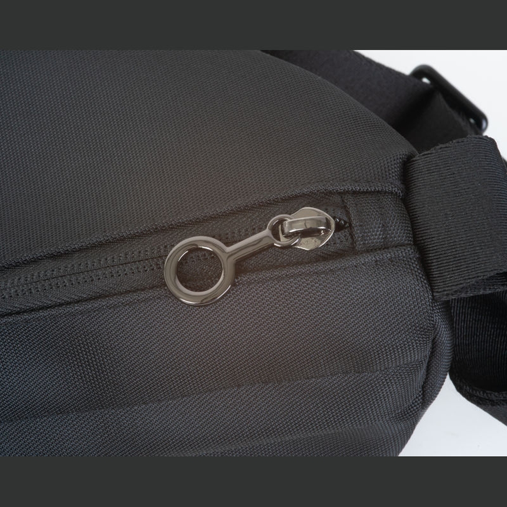 Ferraghini waist bag made of nylon with gun-metal details and black lining. Adjustable strap up to 115 cm. Dimensions: 27,5 x 14 x 16,5 cm