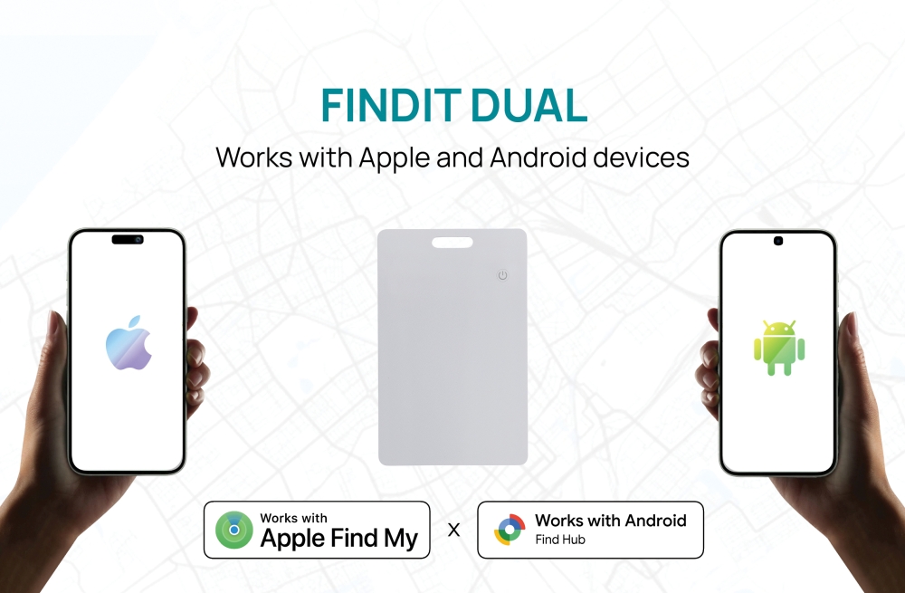 Never lose your wallet again with the ultra-thin Dual Findit card, featuring integrated Find My technology that connects seamlessly with both Apple’s Find My network and Android’s Find Hub network. With end-to-end encryption provided by Apple and Google, your location data is secure, so you can keep track of your favourite items in real time—wherever you are. Once youre close by, you can activate a sound to find its exact location. Findit is IPX5 wateproof and comes with a long-lasting rechargeable battery, making it incredibly convenient. Simply place the 2.3mm card on a wireless charger, and in just 1 hour, it will be fully charged and ready to go for up to 6 months—no need to worry about replacing batteries. Findit also has a lower impact by being made from RCS recycled ABS, with a total recycled content of 40% based on total item weight. The RCS certification guarantees a completely certified supply chain of recycled materials, and Findit comes packaged in FSC® mix gift packaging.Dimensions: 8.5 x 5.4 x 0.1 cm