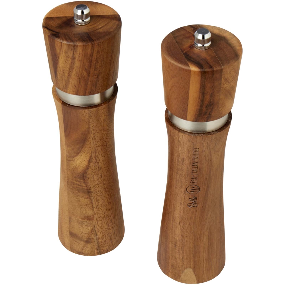 Single ceramic salt or pepper mill with acacia wood outer layer. The smooth turning mechanism and ergonomically shaped body ensure comfortable grinding. Dimensions: 21,3 x O 5,3 cm