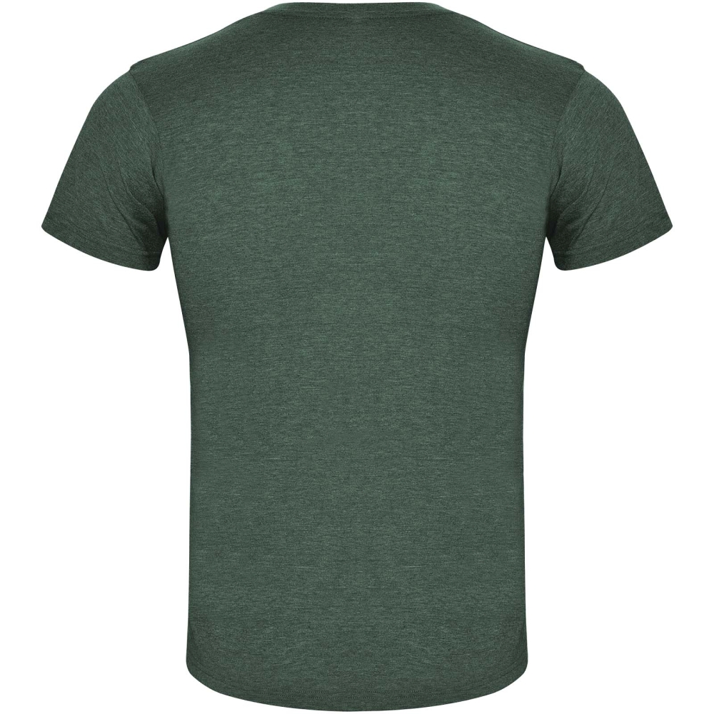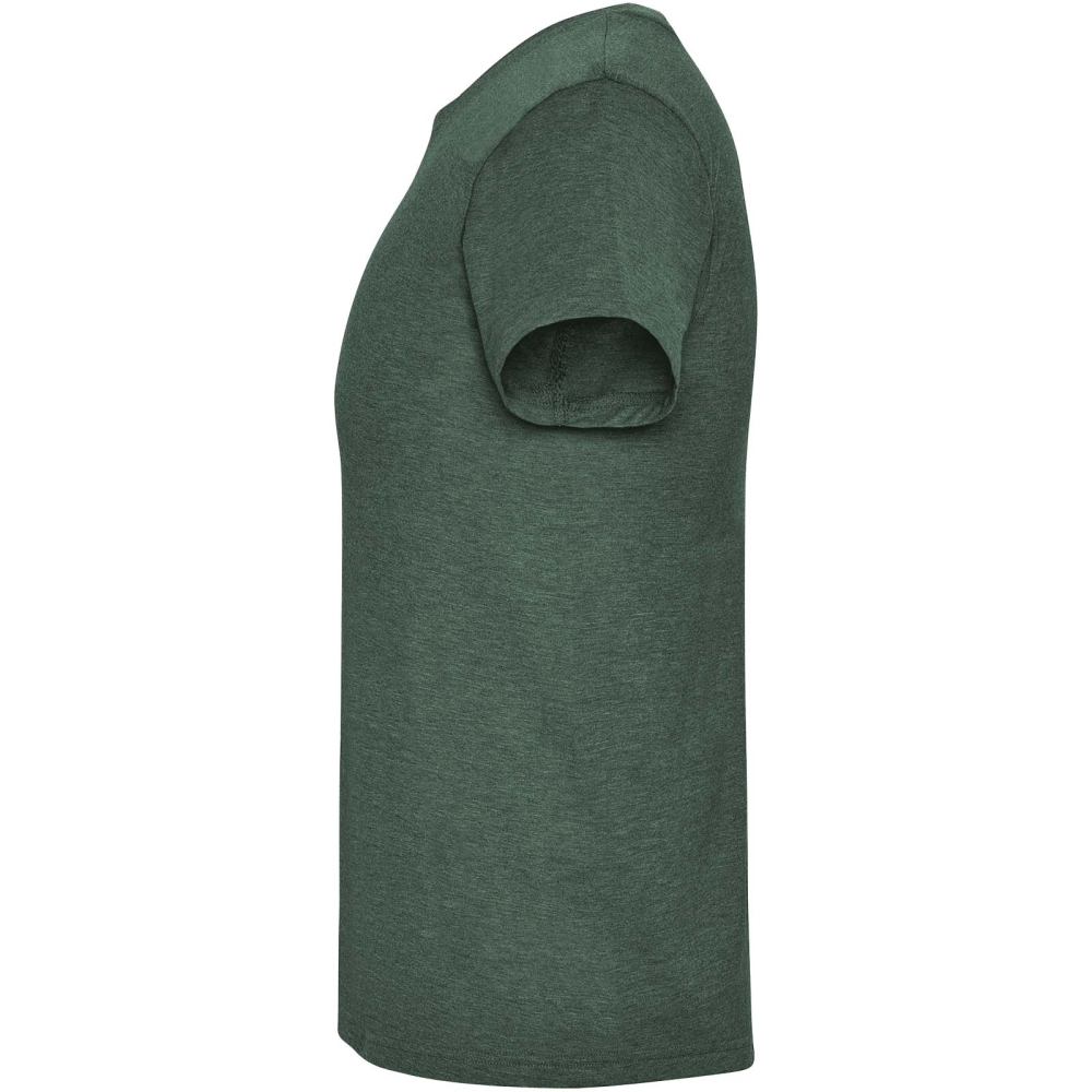 Short-sleeve t-shirt with heathered effect. 1x1 ribbed crew neck with interior reinforced covered seams. Tubular fabric. Removable label.