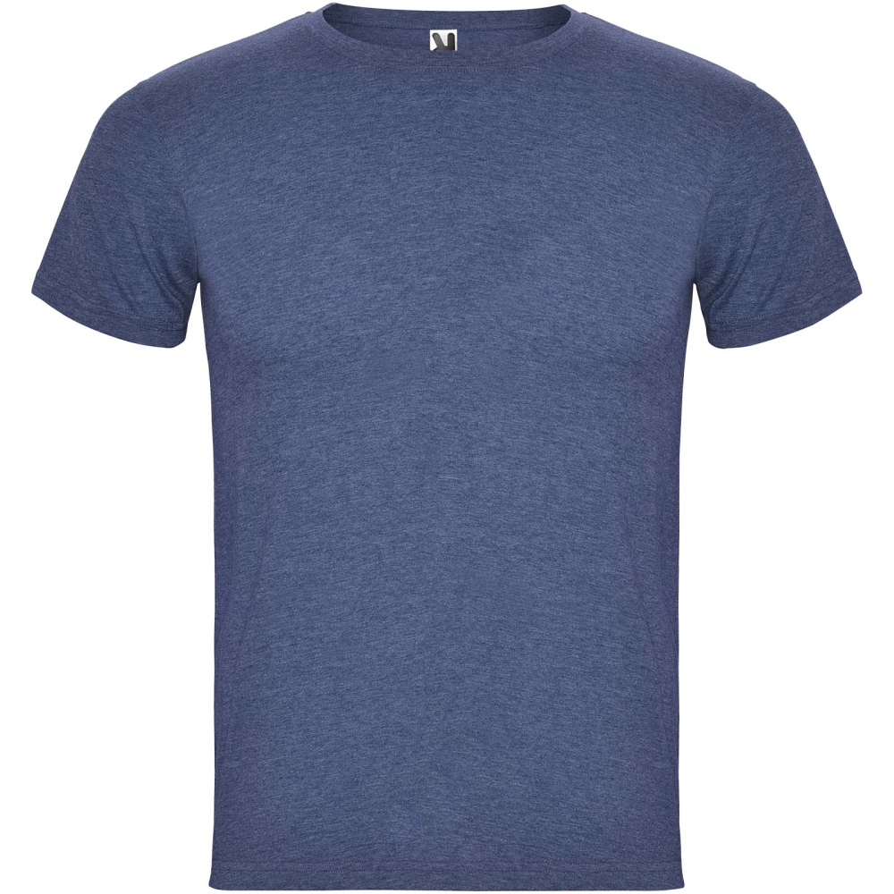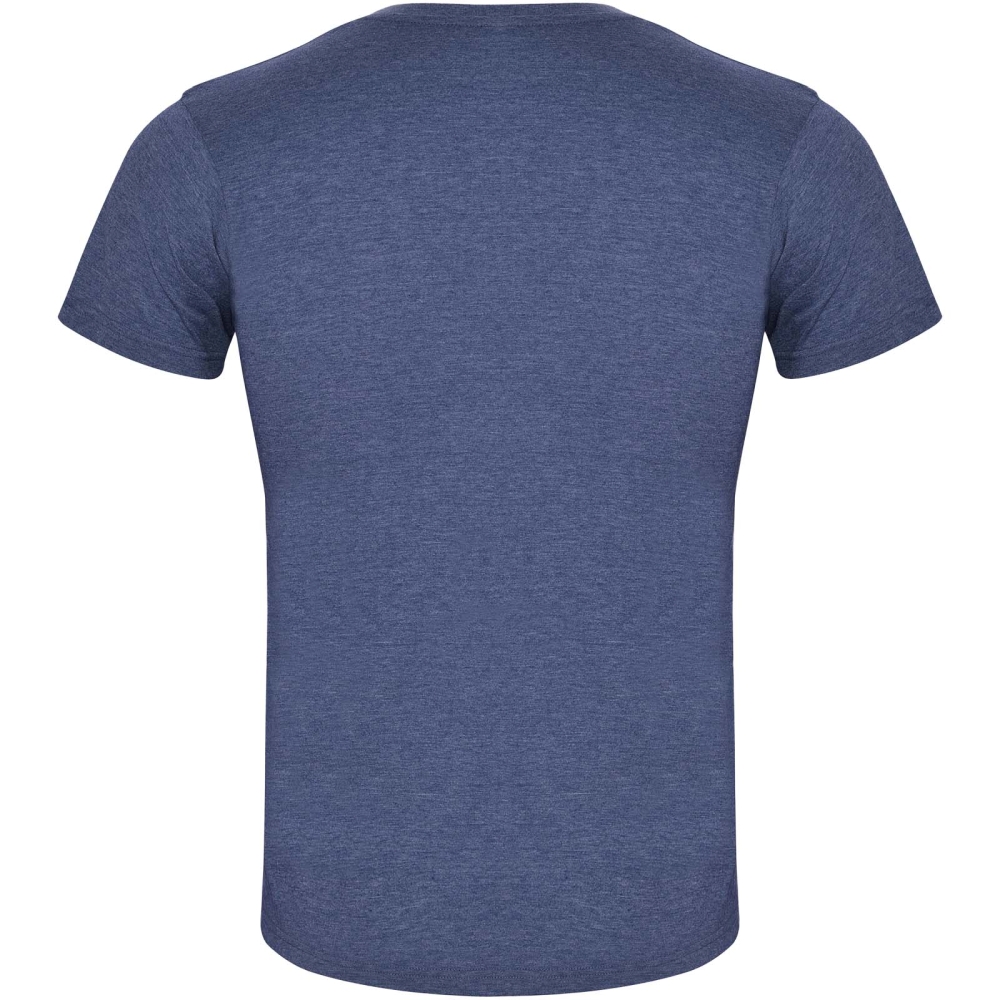 Short-sleeve t-shirt with heathered effect. 1x1 ribbed crew neck with interior reinforced covered seams. Tubular fabric. Removable label.