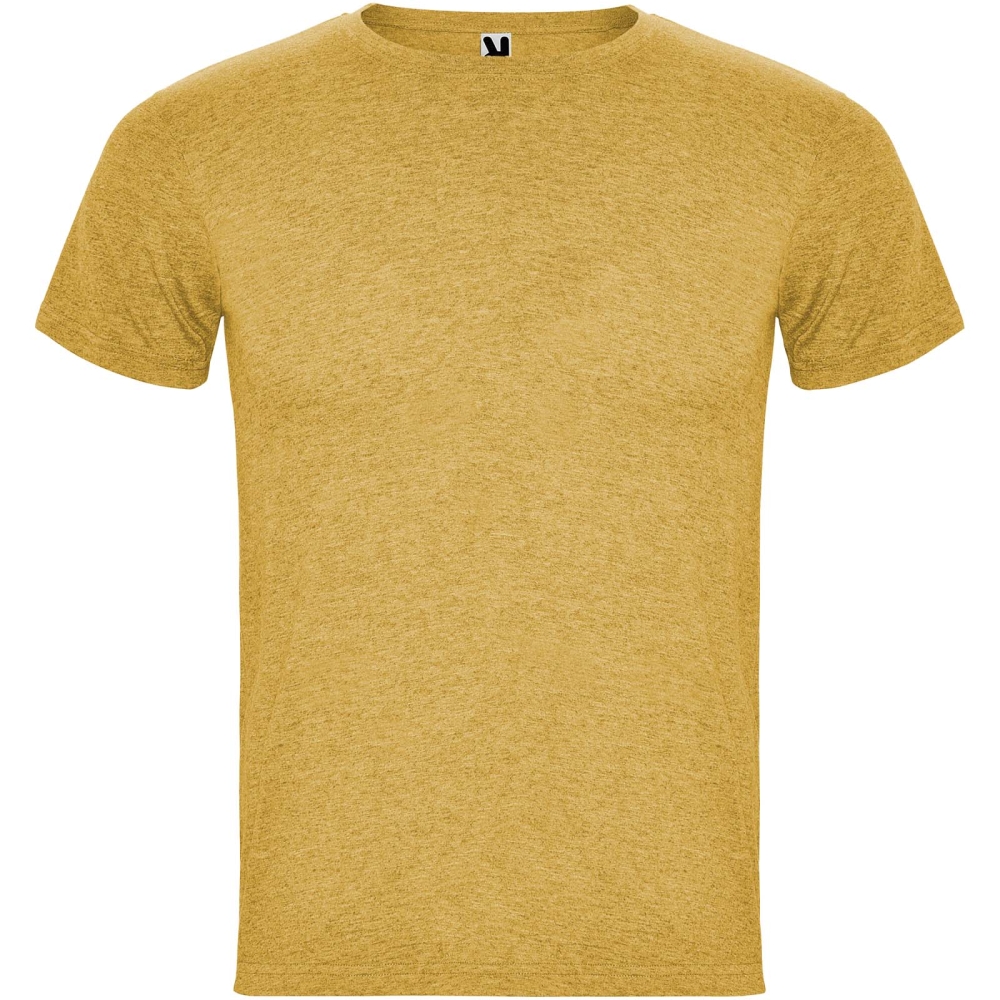 Short-sleeve t-shirt with heathered effect. 1x1 ribbed crew neck with interior reinforced covered seams. Tubular fabric. Removable label.