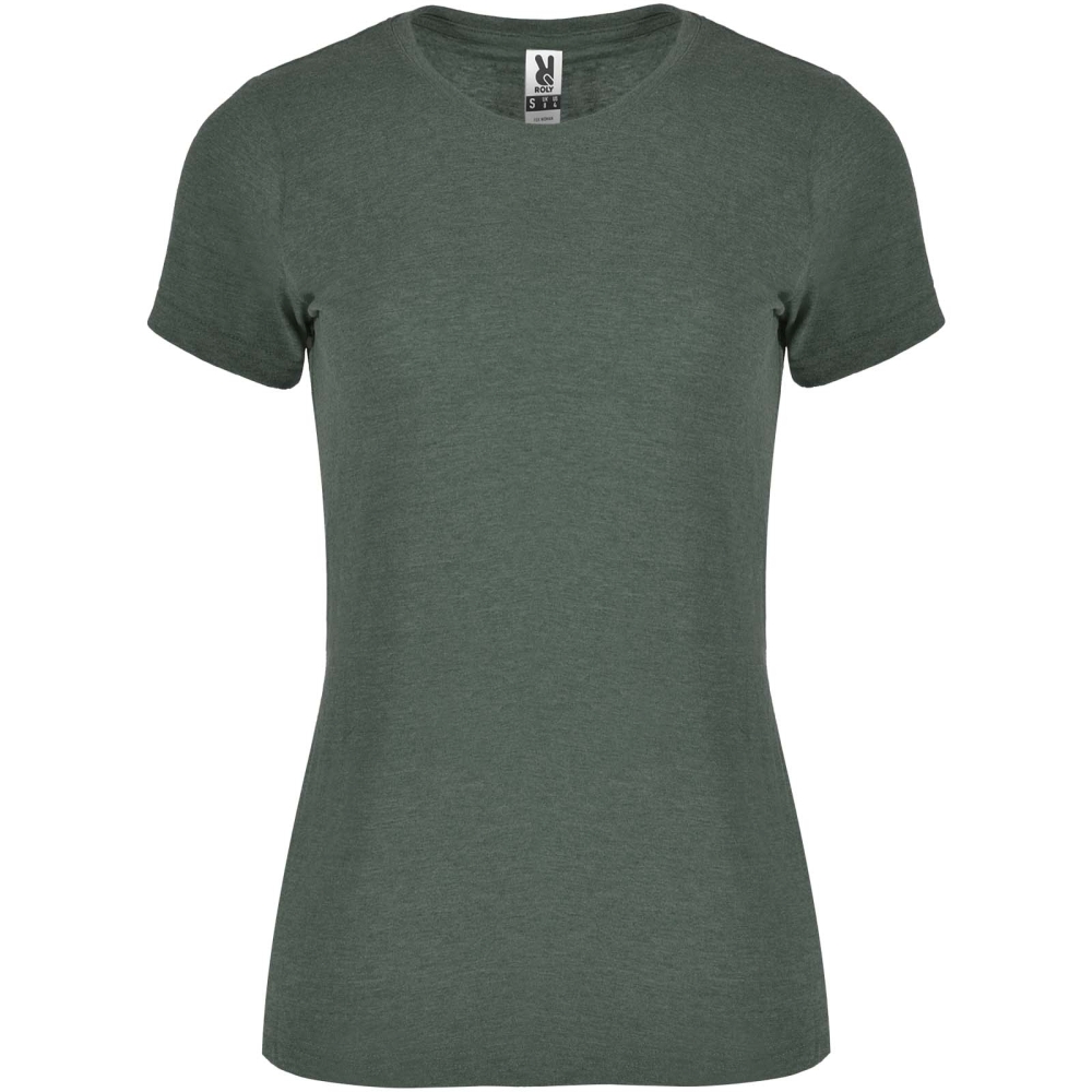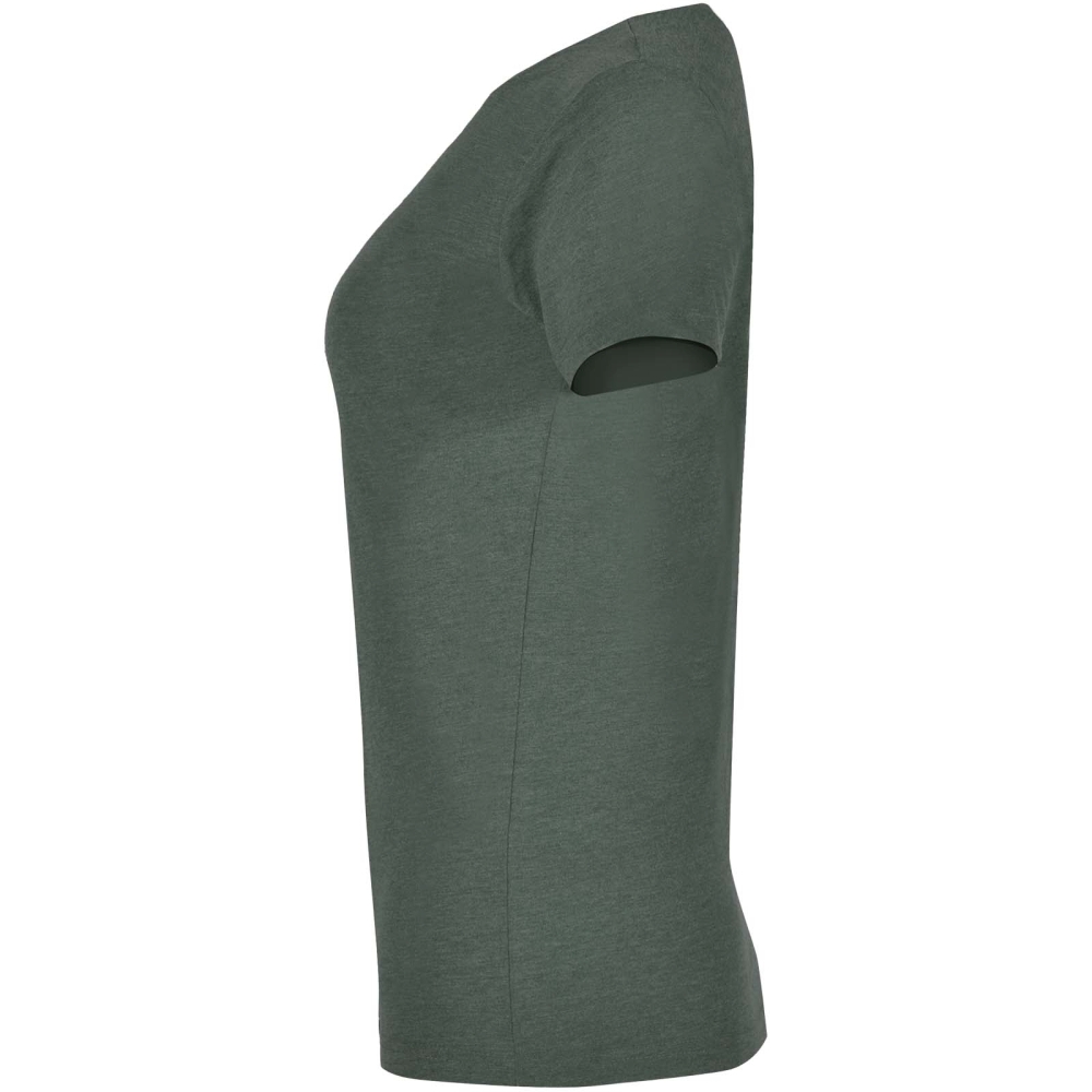 Short-sleeve t-shirt with heathered effect. Fitted design. 1x1 ribbed crew neck with interior reinforced covered seams. Tubular fabric. Removable label.