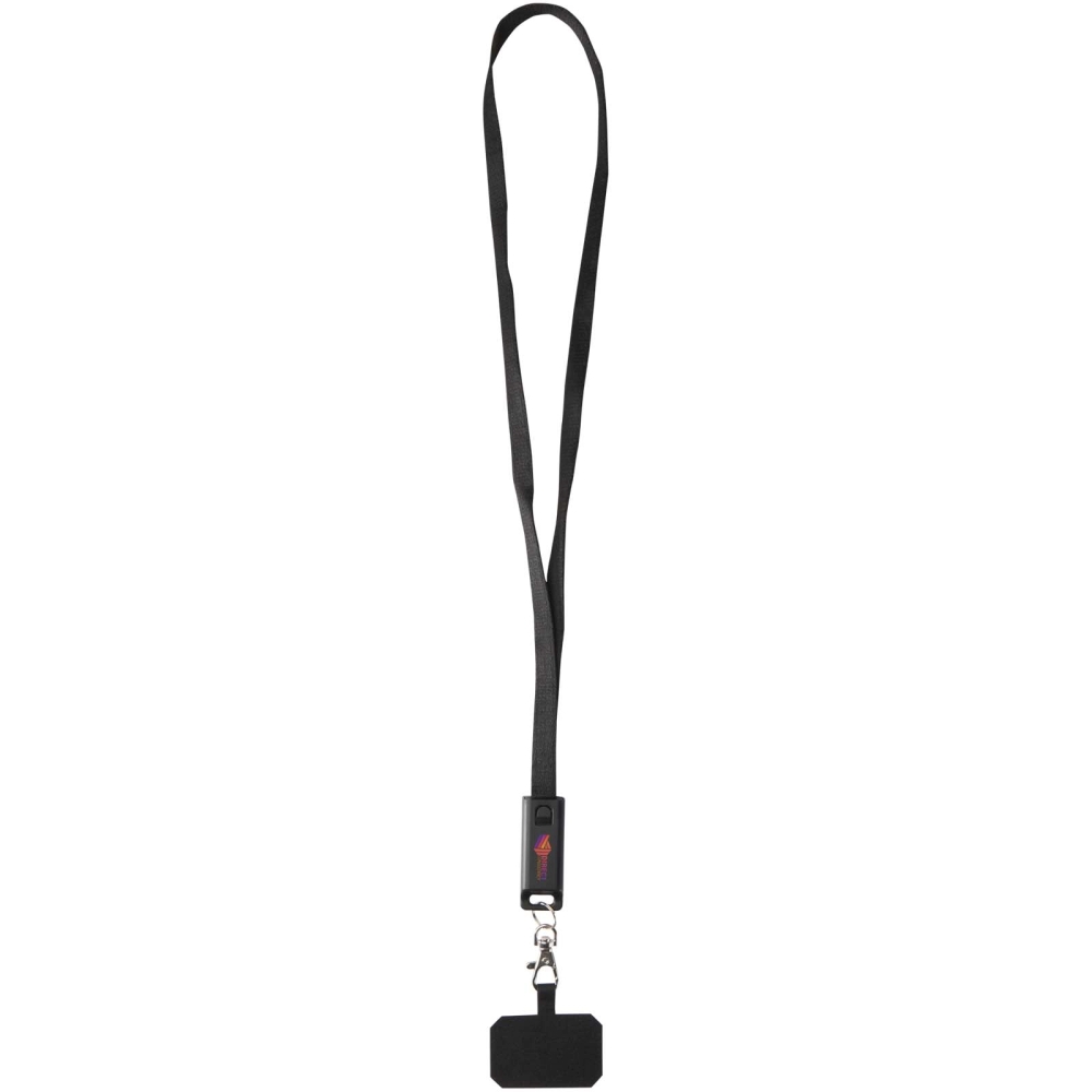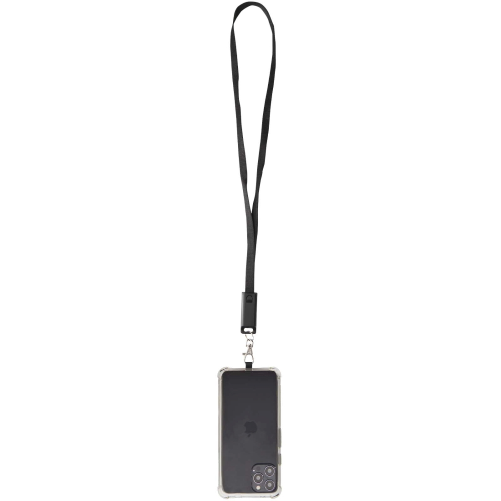 Franz recycled plastic smartphone lanyard with built-in data sync and 65W fast charge 5-in-1 cable, solid black