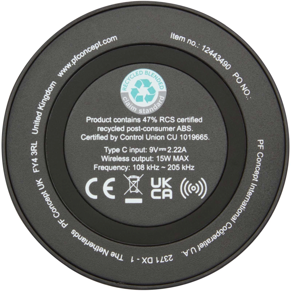 Freal 15W recycled plastic wireless charging pad, solid black
