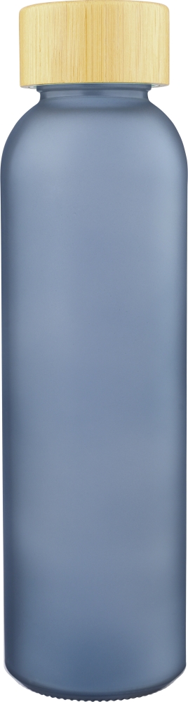Glass drinking bottle (500 ml) with a frosted coated body and bamboo screw lid with PP inner core. Made from sodium calcium glass, suitable for cold drinks only. Individually packaged in a brown cardboard box. Dimensions: 6,3 cm x 23 cm