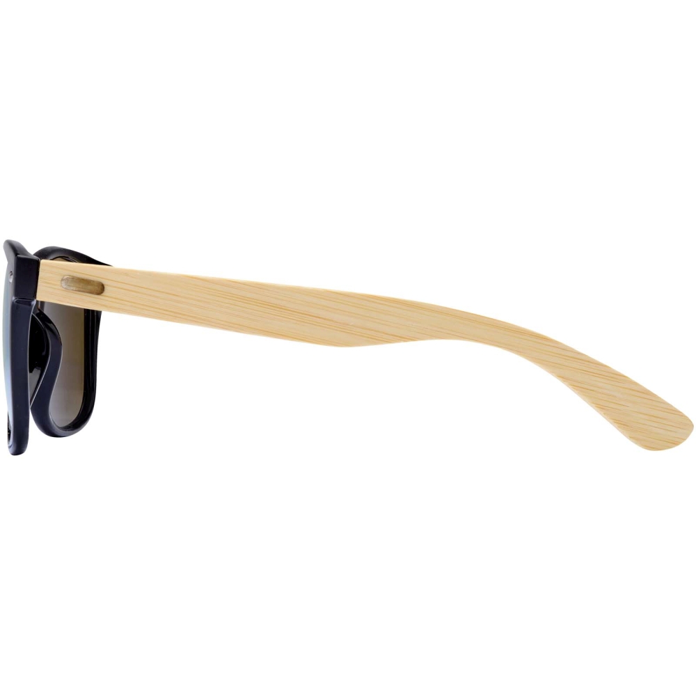 Stylish sunglasses with coloured lenses and bamboo temples. The UV 400 lenses provides protection from harmful ultraviolet light rays. Compliant with EU safety standard EN12312-1. Dimensions: 14 x 4,5 x 14 cm