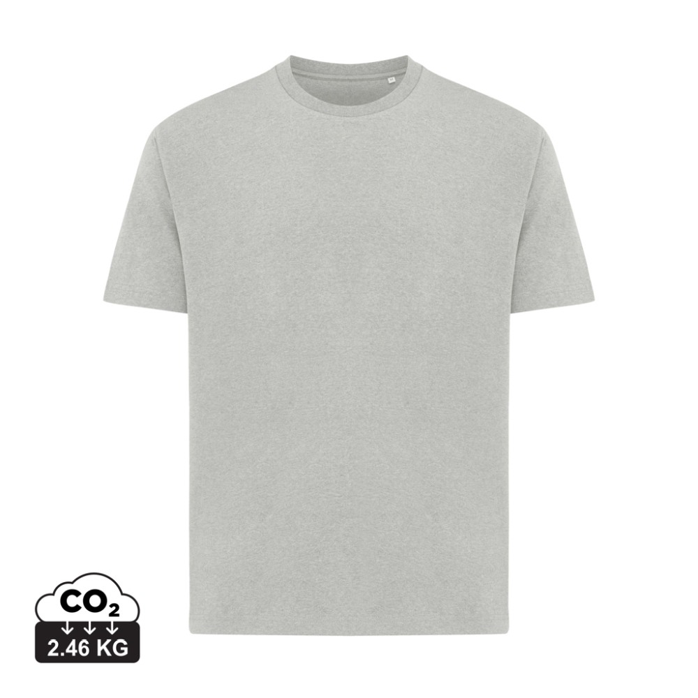 Unisex boxy fit t-shirt made from 100% cotton, of which 50% is recycled and 50% organic, 180 G/M2. This trendy t-shirt has a neckline with 1x1 rib and a comfortable boxy fit with a slightly shorter body length. The use of genuine recycled & organic fabric
