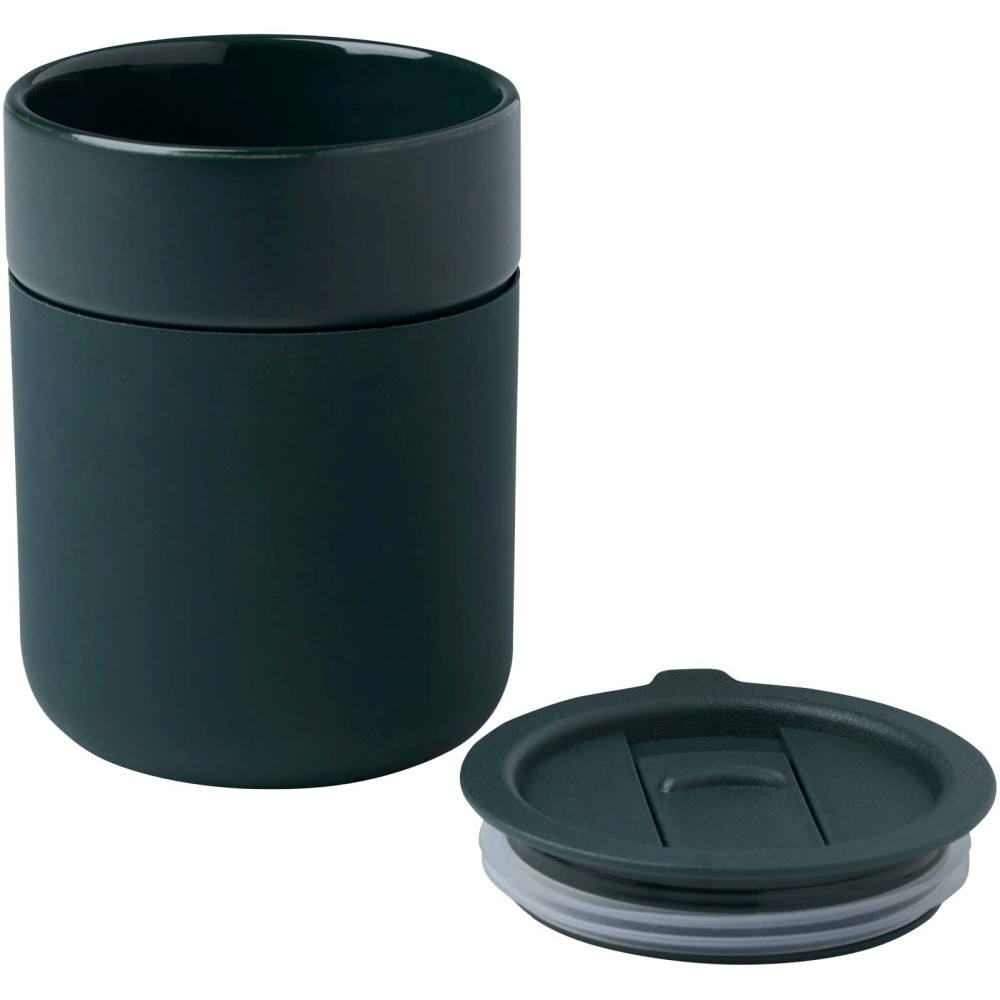 Java 330 ml ceramic tumbler with silicone wrap and plastic lid, green