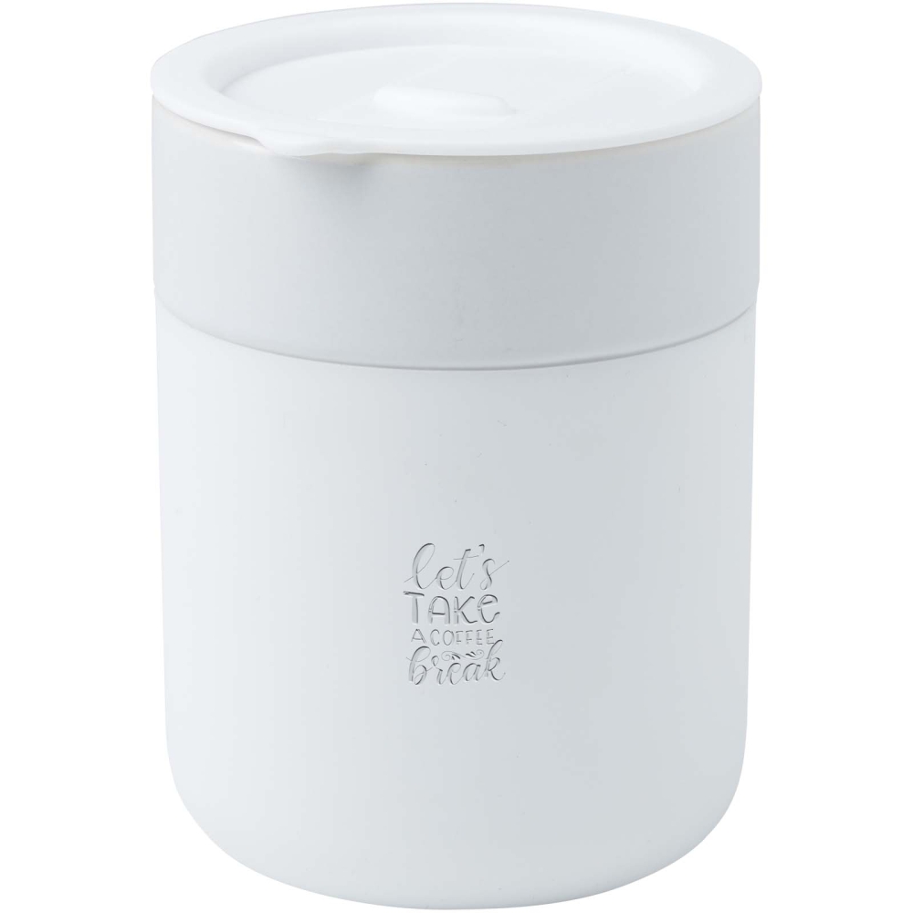 Java 330 ml ceramic tumbler with silicone wrap and plastic lid, white