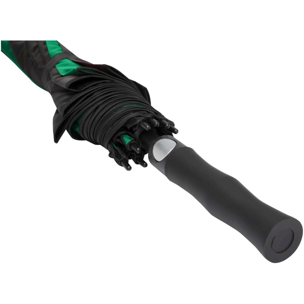 The Jeff windproof golf umbrella is designed with a spacious 55" polyester canopy, comfortably shielding multiple people from the elements. The robust fibreglass shaft and frame provide excellent flexibility, offering strong resistance against high winds. A practical plastic handle with an auto-open button ensures quick and easy operation. The contrasting canopy panels present a perfect opportunity for bold, eye-catching branding—ideal for events, promotions, or everyday use. Dimensions: 106 x 6 cm