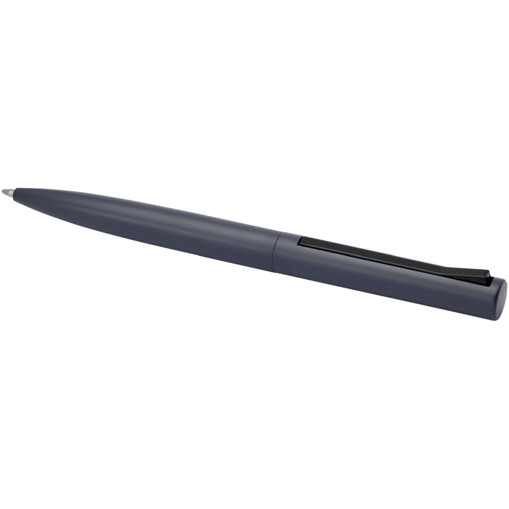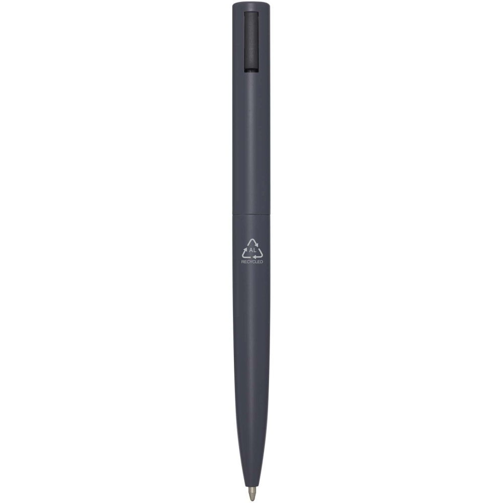 Ballpoint pen with the upper barrel made of recycled plastic, and the lower part is made of recycled aluminium. The clip is made of iron. Ink colour: Black. Writing length: 1000 metres. Nib size: 1.0 mm. Dimensions: 14,5 x O 1,5 cm